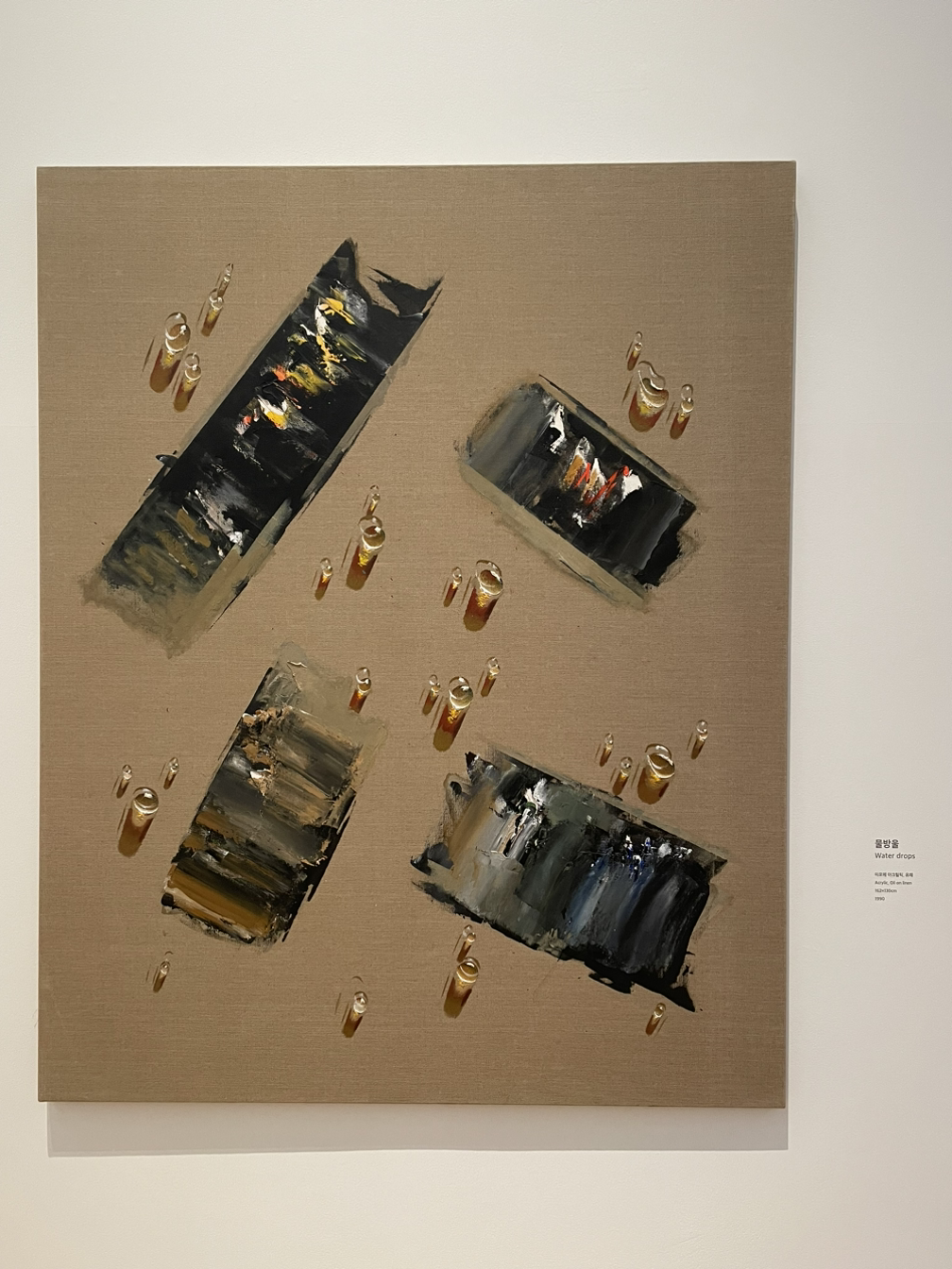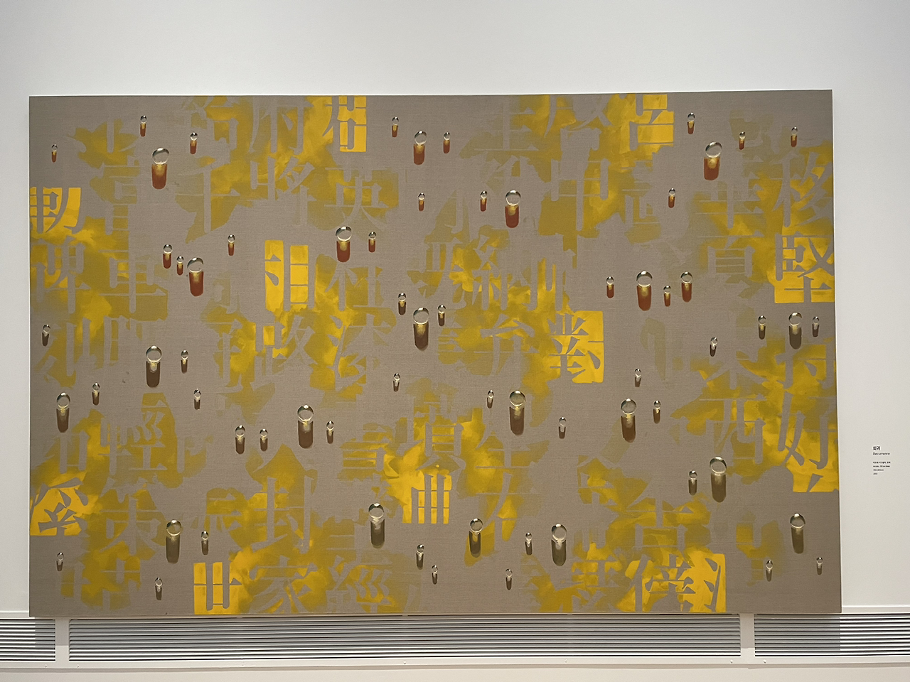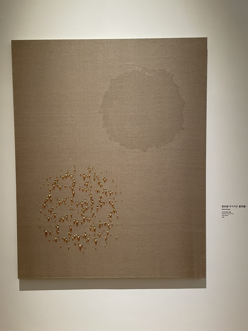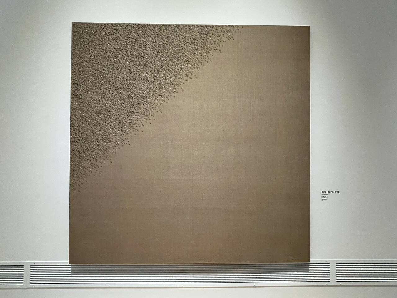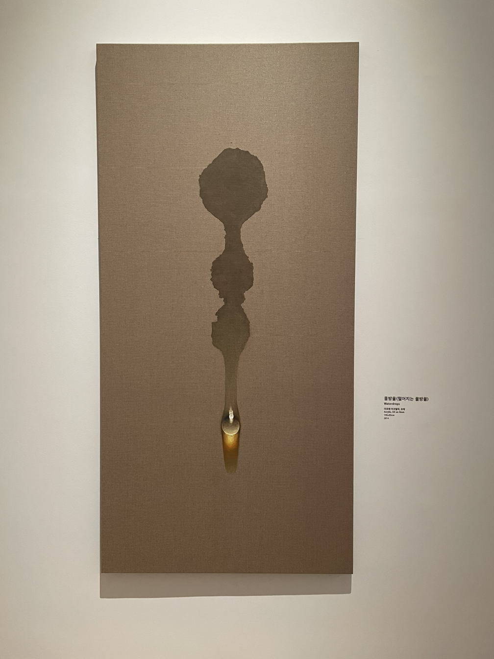 유교적 물방울이라니... 이 캔버스와 문자. 그리고 물방울의 어떤 배열과 감도, 배치와 개수, 물방울의 흐름이 어디가 어떻게 유교적인 걸까? 가깝지 않으면서도 멀지 않고 적정한 거리를 유지하며 조용히 관조하는 듯한 태도일까? 애당초 유교적인 게 무엇일까?
