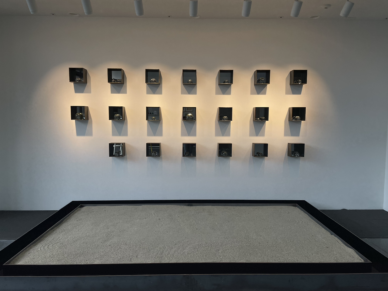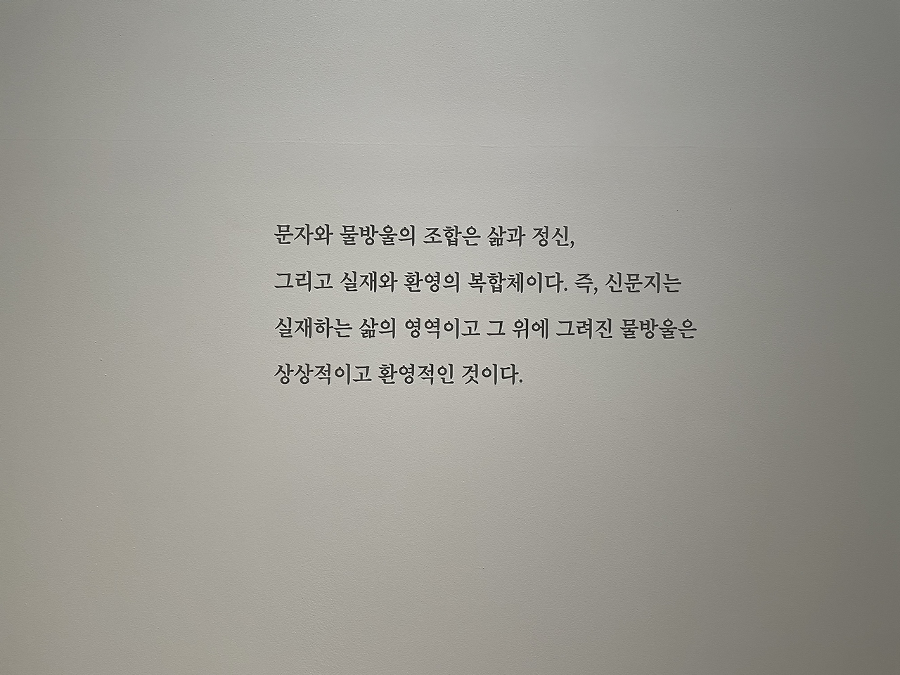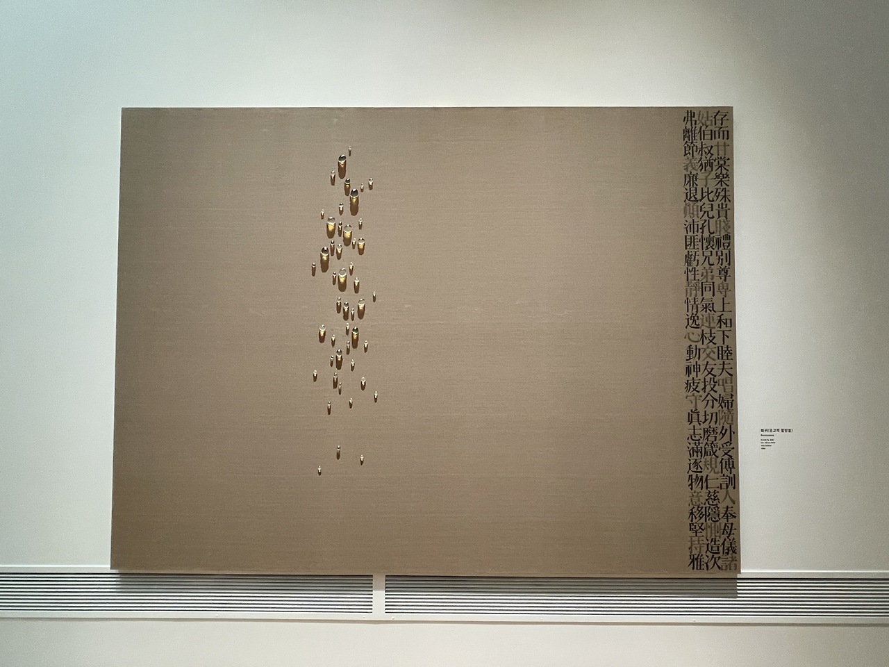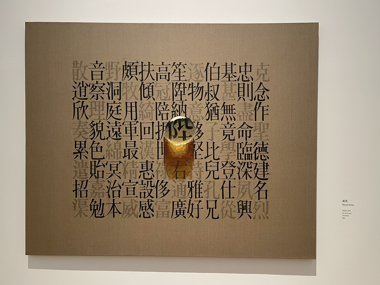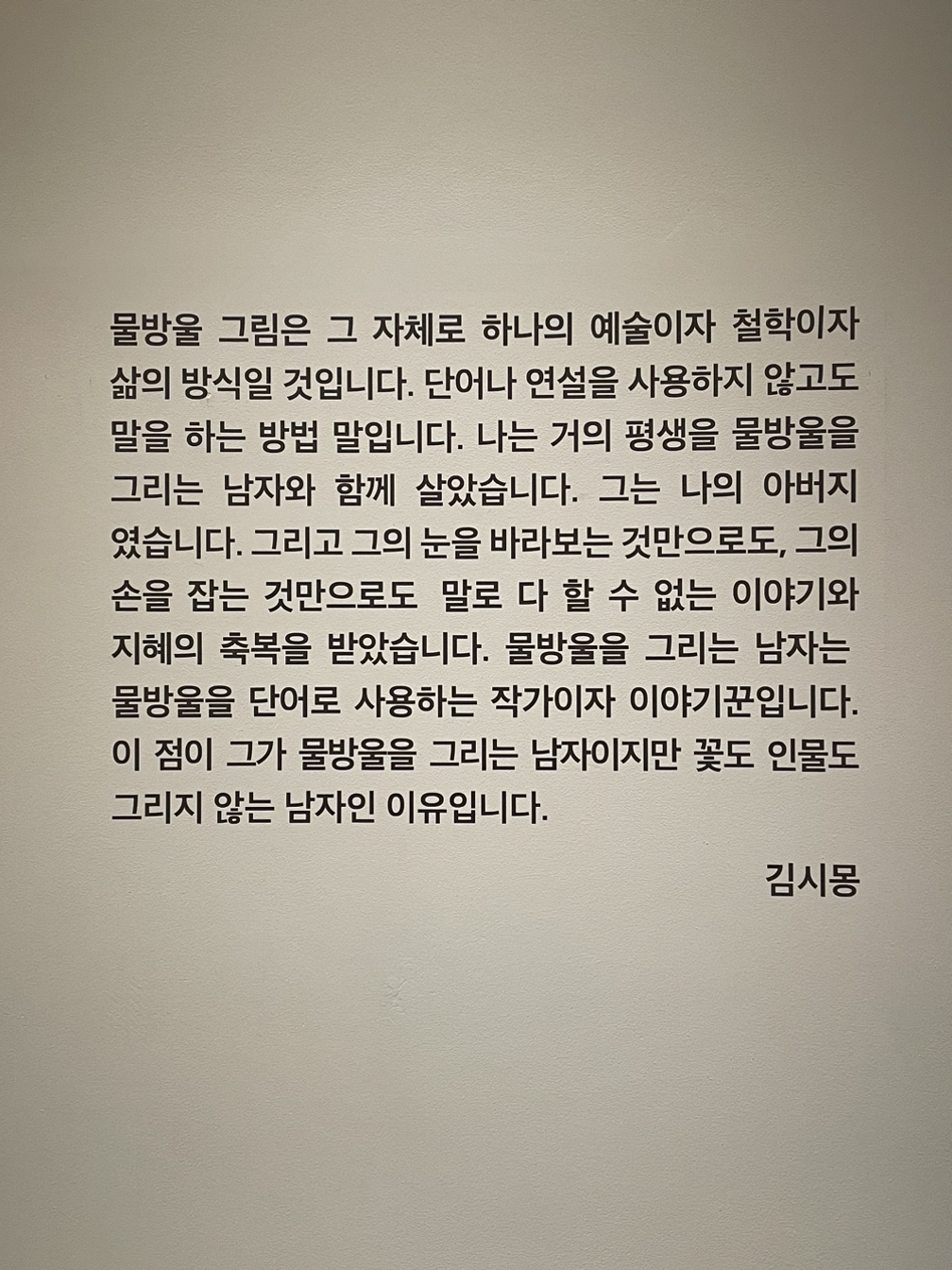 유교적 물방울이라니... 이 캔버스와 문자. 그리고 물방울의 어떤 배열과 감도, 배치와 개수, 물방울의 흐름이 어디가 어떻게 유교적인 걸까? 가깝지 않으면서도 멀지 않고 적정한 거리를 유지하며 조용히 관조하는 듯한 태도일까? 애당초 유교적인 게 무엇일까?