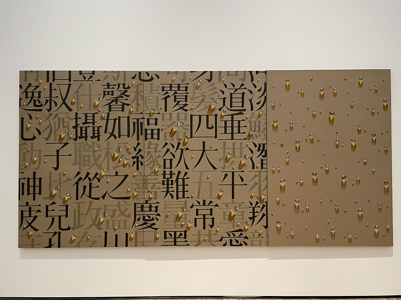 90년대 이후 그의 작품 세계의 본령이라고 할 수 있는 천자문을 배경으로 한 물방울 작품들은 좀 더 동양적이면서도 신비롭다.