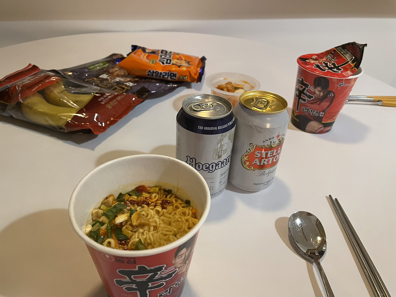 조촐하게 컵라면과 맥주로 마무리 한 3일차.