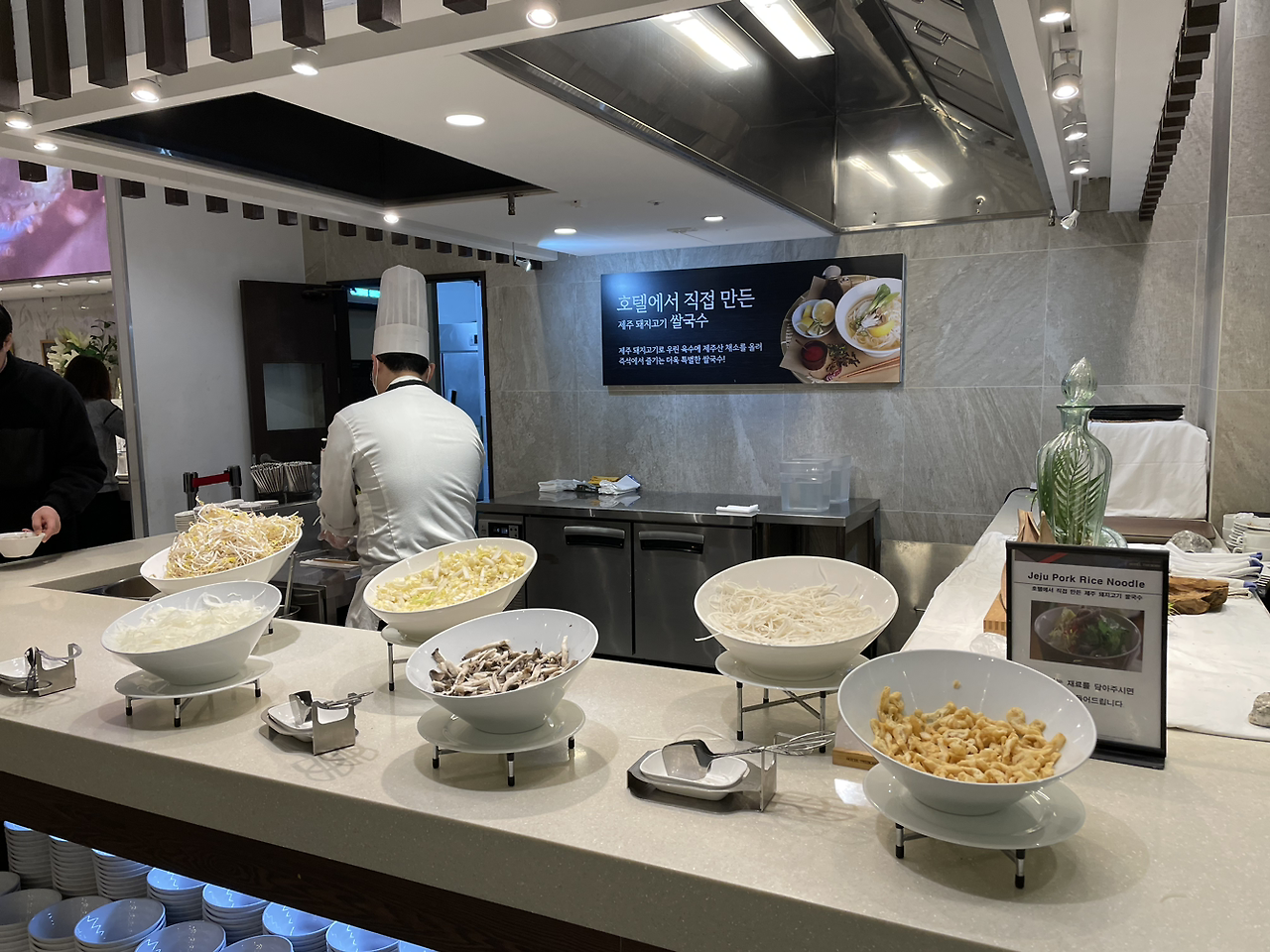 전반적으로 매우 깔끔하고 널찍했으며, 사람이 많아도 정신없다는 느낌을 받진 않았다. 그만큼 회전율이 적절하게 잘 돌아갔고, 음식의 가짓수는 많지 않았으나 알차고 실속 있는 음식들로만 채워졌다. 사실 오늘 아침 탐모라에서 다 먹어보려고 했는데 생각보다 아침 입맛이 돌지 않아서 쌀국수와 샐러드, 빵만 먹었다.