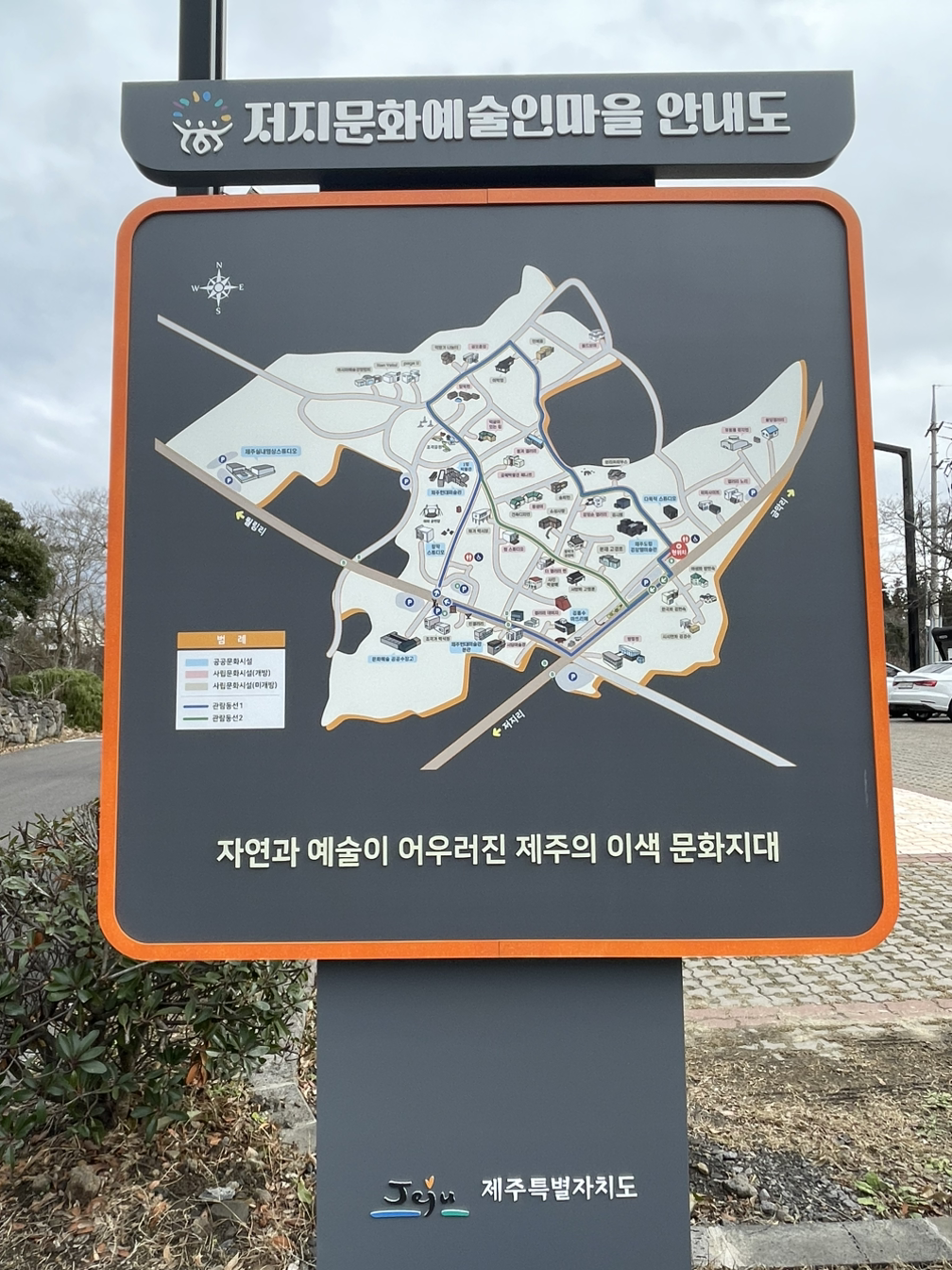 저지문화예술인마을은 마을 전체가 하나의 자연 예술품과 같은 마을인데 굉장히 조용하고 사람이 많지 않다. 그리고 마을 전체가 유기적으로 연결되어 있어서 분명히 아까는 제주현대미술관 입구로 들어갔는데 걷다 보면 다른 예술가 작업실과 전시관으로 이어지고 더 걷다 보면 김창열 미술관으로 연결되는 등 마을 전체가 미술관으로 봐도 무방할 정도로 단독 주택 하나하나도 예사롭지 않다.