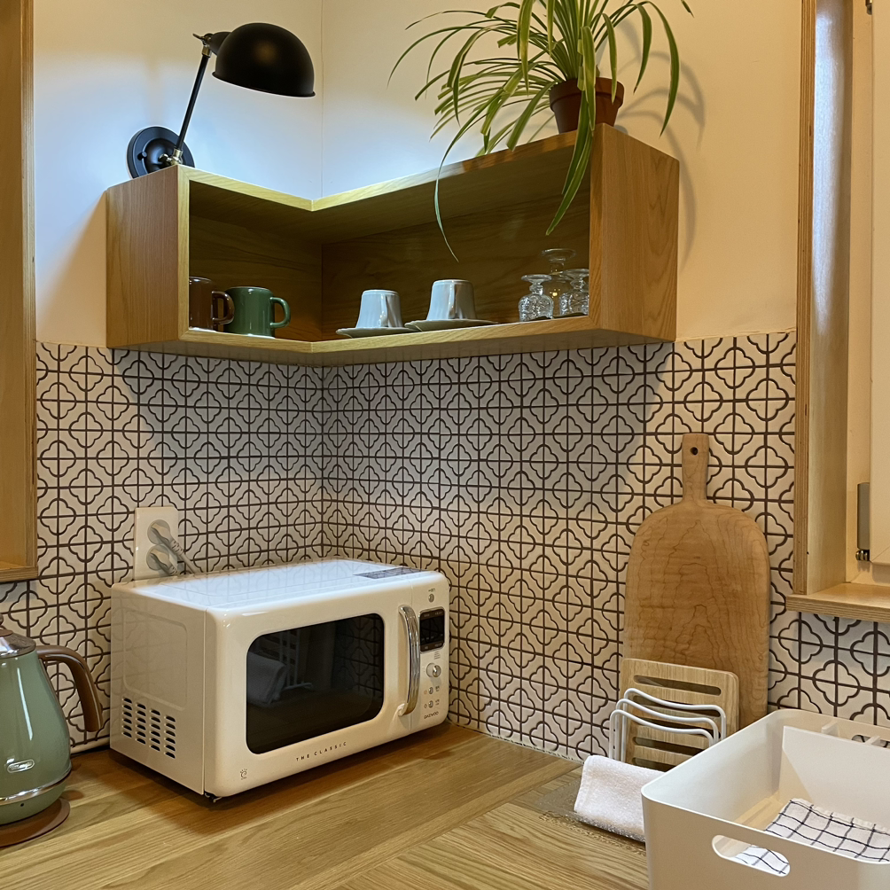 아담하지만 깨끗한 침구와 바닥, 타일, 주방용품과 가전기기, 화장실 어메니티까지 뭐 하나 흠잡을 곳이 없이 완벽, 깔끔, 센스 그 자체였다. 숙소에서부터 벌써 힐링이 된다.