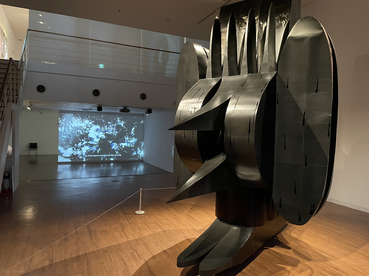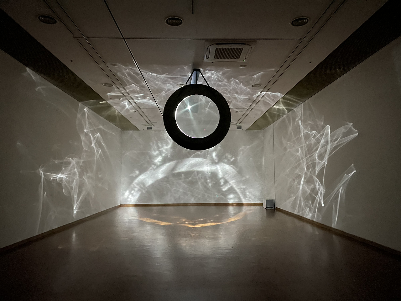 첫 기획 전시실부터 등장하는 세련된 형식의 움직이는 빛과 산란하는 먼지를 투과하는 형상으로 서서히 담배연기처럼 오염되어 가는 지구의 대기와 기후 위기의 경각심을 불어 일으킨다.