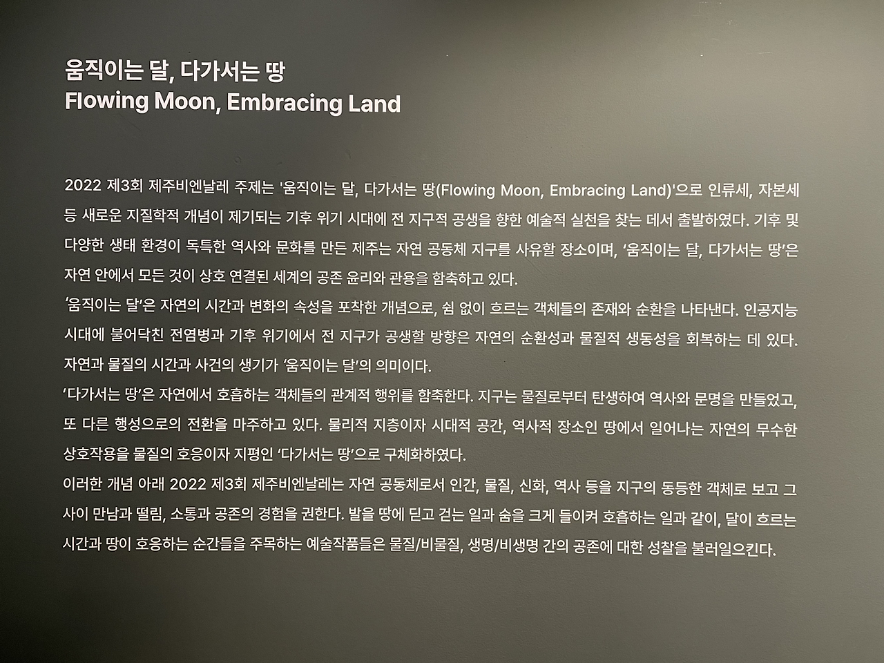 지금 제주현대미술관은 2022.11.16 ~ 2023.2.12까지 제3회 제주비엔날레 상시 전시를 운영하고 있다.