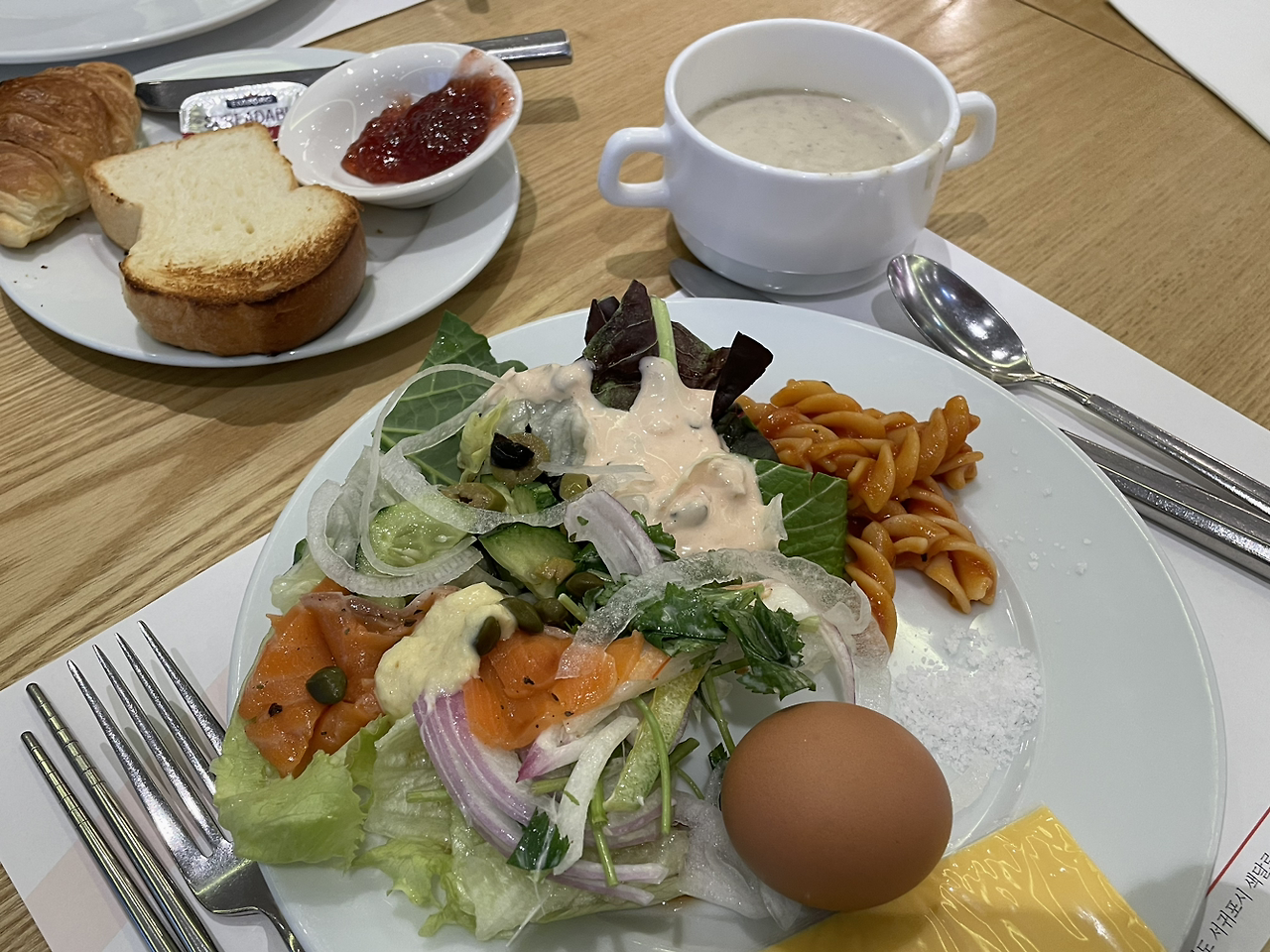 옹골차게 먹은 샐러드와 수프, 모닝 토스트
