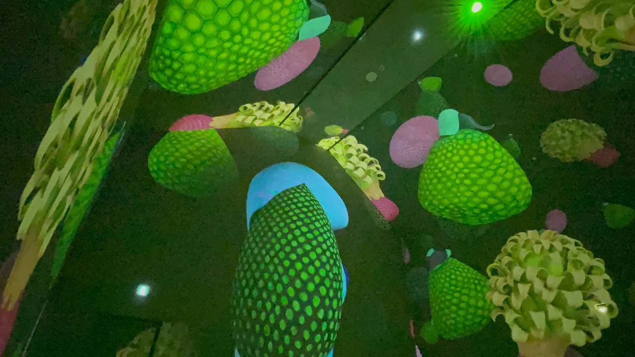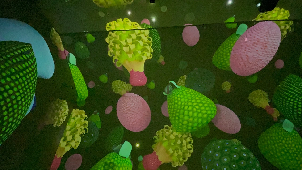 다채로운 색채의 향연 속에 던져진 것 같았다. 벽면과 바닥, 천장 모두 미디어 아트로 채워졌는데 사방이 거울이라 엄청난 공간감을 느꼈다. 그리고 바닥에는 발로 꽃씨를 밟으면 꽃이 피는 재미있는 스마트 터치 기능도 내장되어 있어 아이들이 좋아할 것 같다.