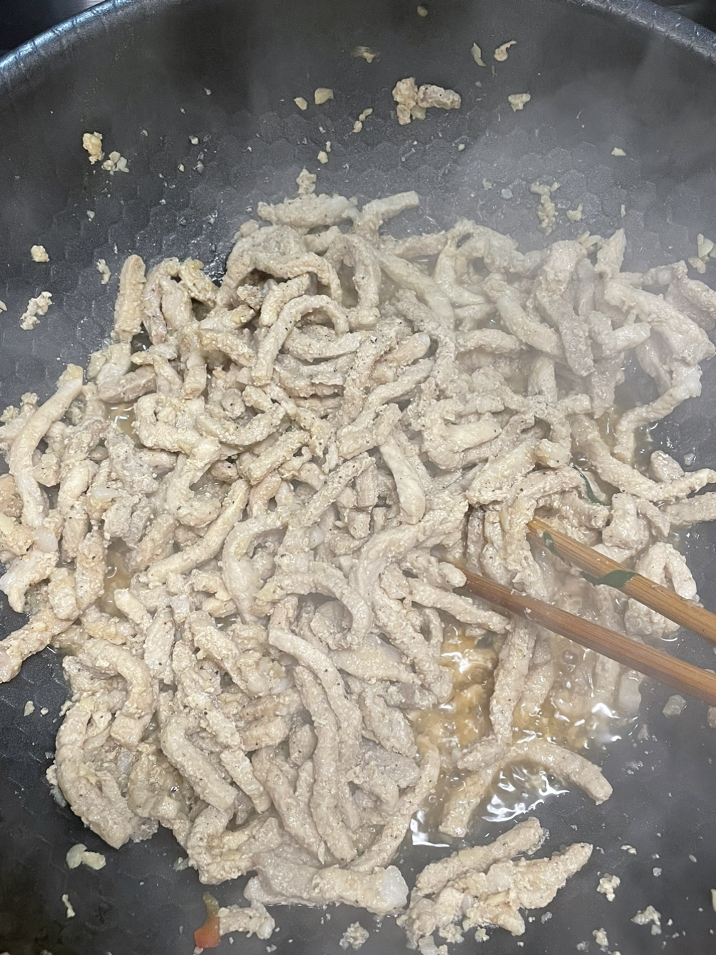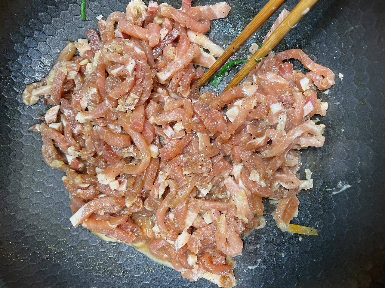 12. 익힌 야채를 건져낸 후 그 자리에 고기를 넣어 충분히 볶는다. 너무 익히면 질겨지니 고기가 하얗게 될 정도로 익히면 건져준다.