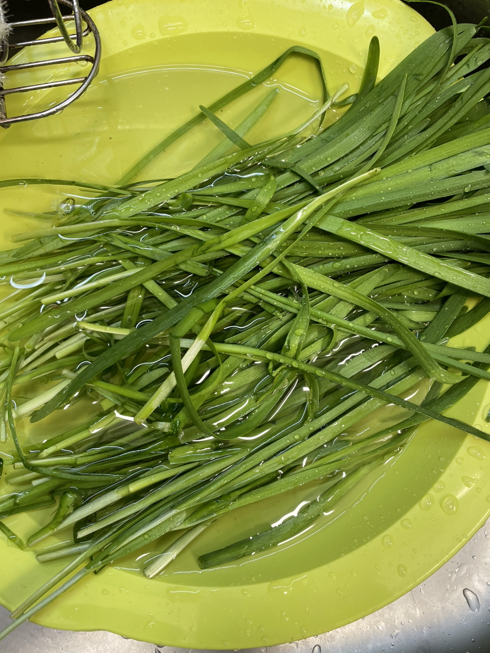 3. 우리 엄마는 시금치를 이용했는데 나는 데치기 싫어서 부추 반 단을 씻어 종종 손가락 두 마디 길이로 잘라주었다.