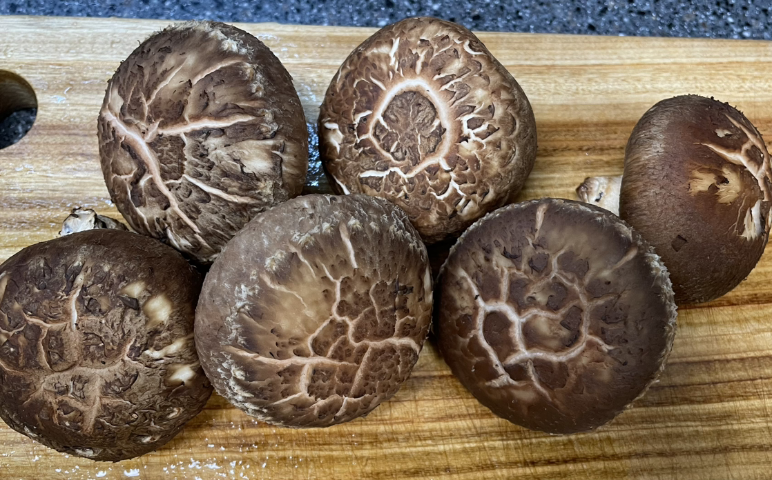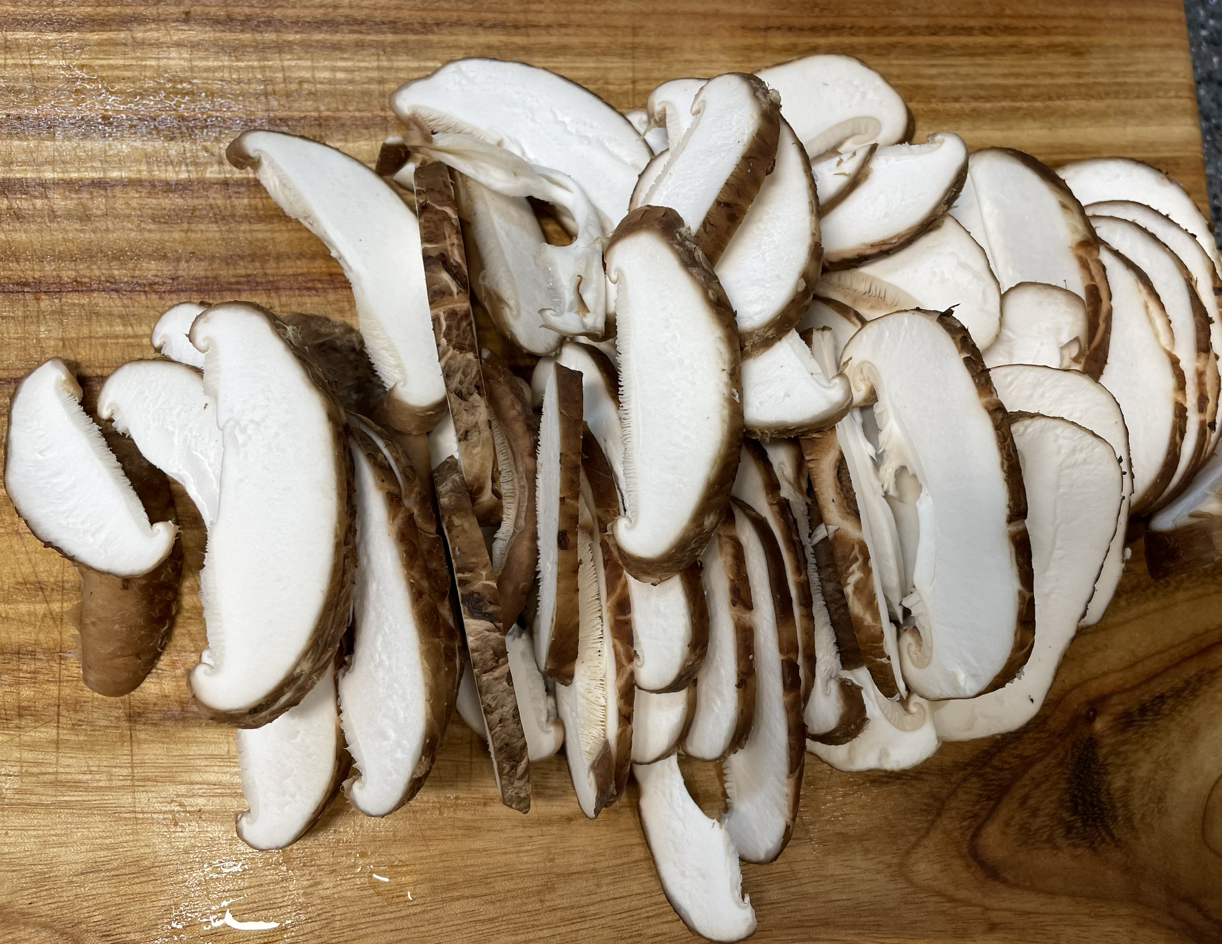 6. 표고버섯 6개도 밑동 제거하고 편 썰기