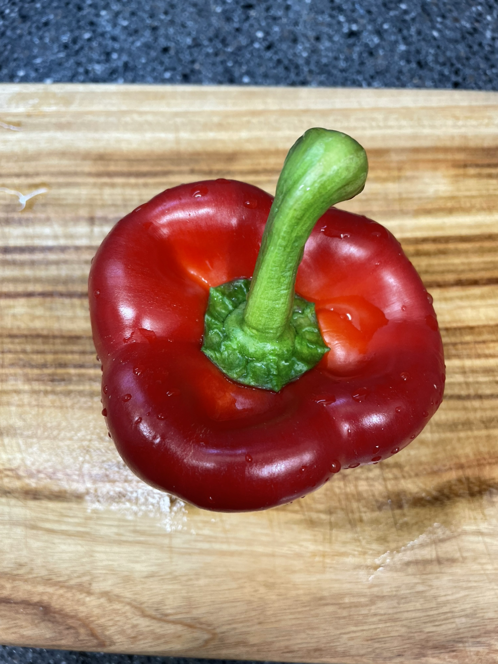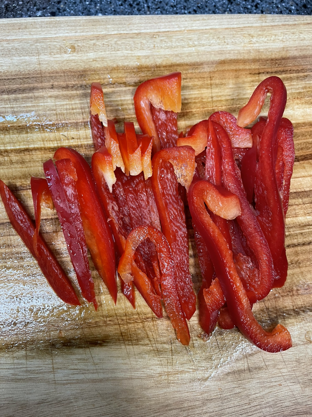 5. 고기 양념이 배도록 재어둔 후 마저 남은 야채를 손질한다. 파프리카 빨간 거 하나 채썰기