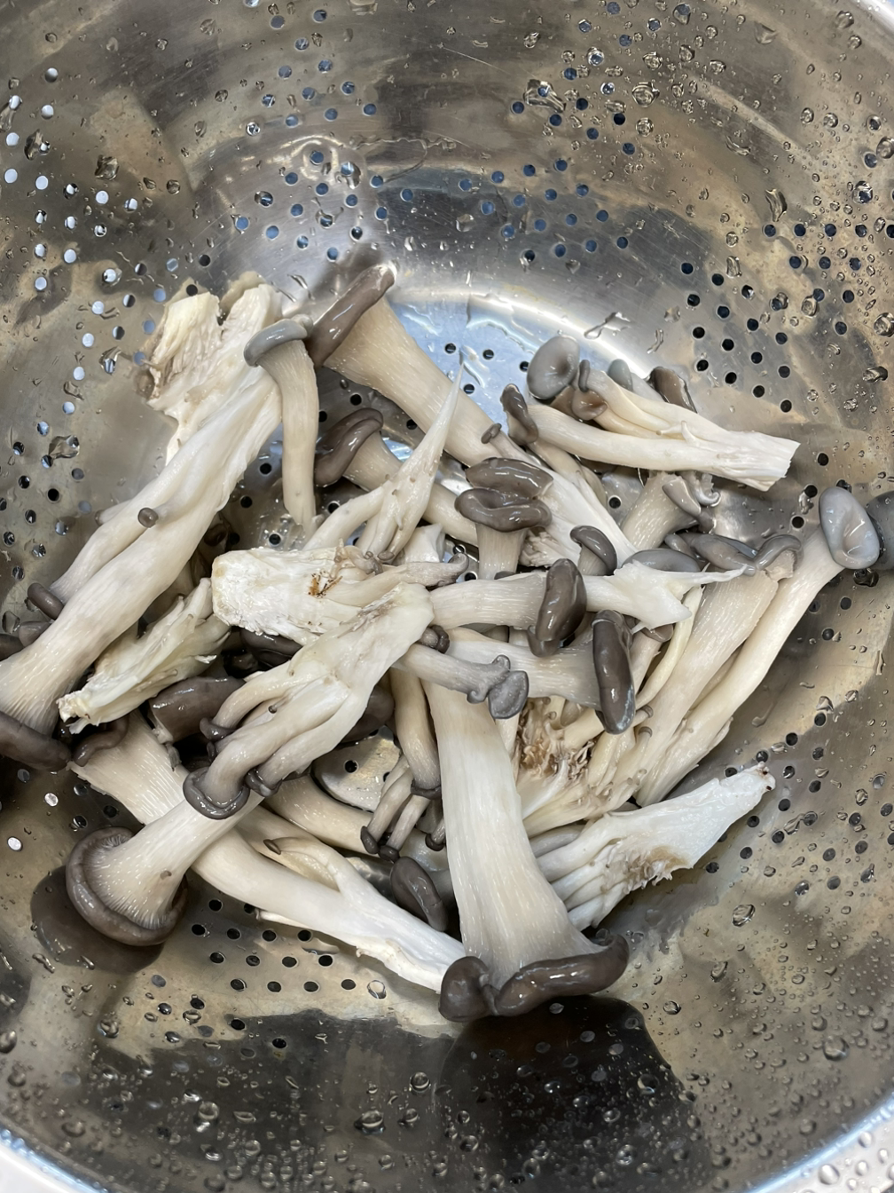 2. 당면을 불릴 동안 밑재료를 손질한다. 이번엔 가족끼리 먹을 잡채이니 푸짐하게 준비했다. 먼저 느타리버섯 한 팩을 씻어 잘게 잘라준다.