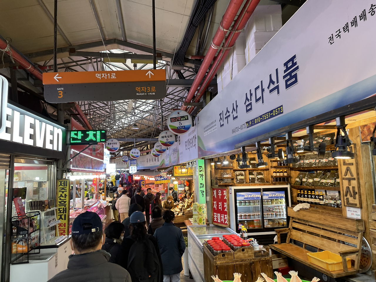 여기를 온 목적은 오늘의 점심식사와 시장 구경, 그리고 오메기떡과 과즐 구입을 해야 해서 마지막 날 플렉스 해보기로 한다. 서귀포 올레시장이 큰 줄 알았는데 동문시장에 비할 바가 아니었다.