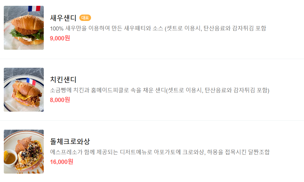 작년에 먹었던 사진인데 올해 2월 22일부터 전 메뉴 구성이 변경되었다고 한다. 사실 이 날에는 오지 아뜰리에의 시그니처 잠봉뵈르를 먹고 싶었는데 이른 시각에 이미 품절이라 크로와상 샌드위치와 새우가 콕콕 들어간 샐러드, 아이스 아메리카노를 먹었다.