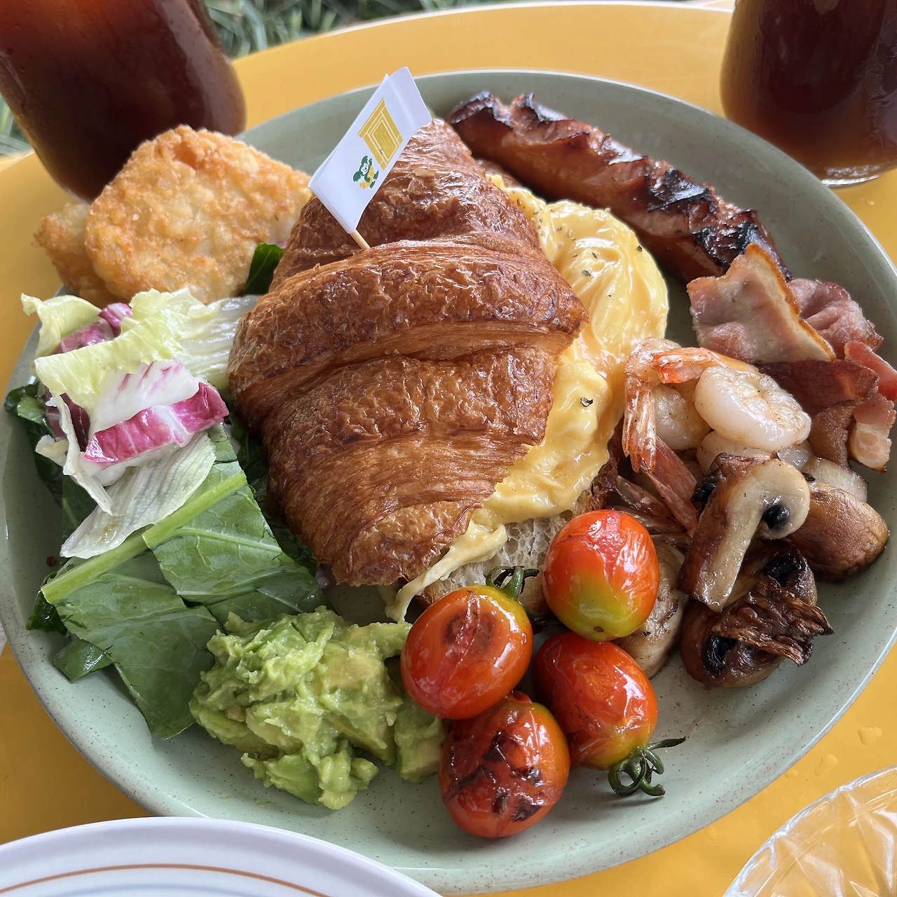 그리고 크로와상도 정말 맛있다. 크로와상 안쪽에 살포시 포개어 넣어진 스크램블 이불이 정말 부드럽다. 그 외에 버섯 구이, 샐러드, 구운 방토, 소세지, 포테이토크로켓까지 뭐 하나 넘치거나 모자람이 없다.