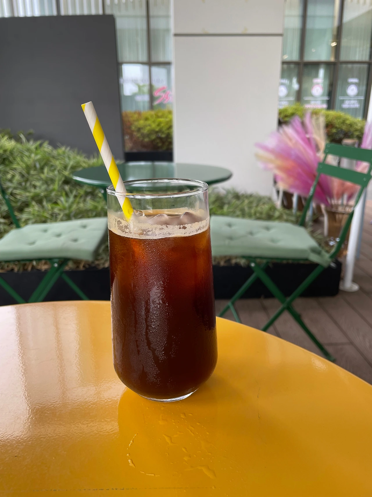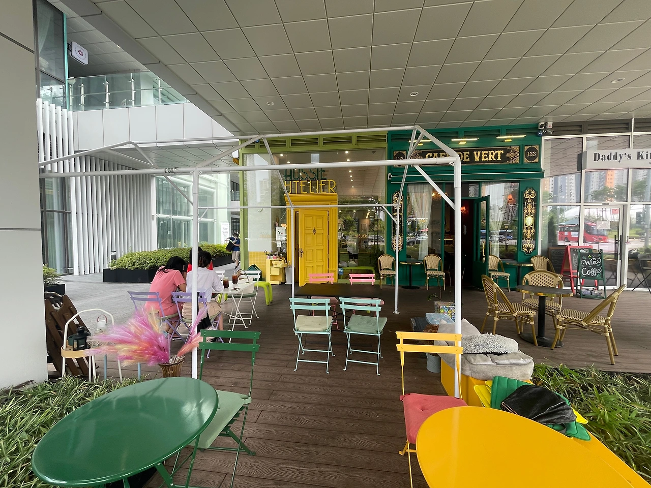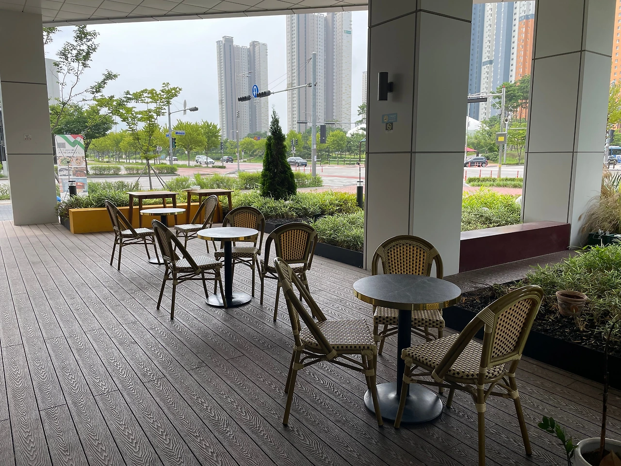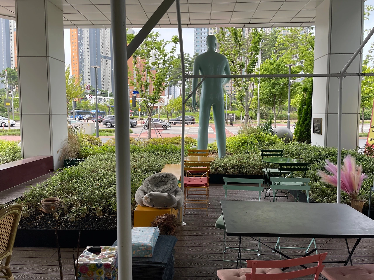 가장 바깥쪽에 앉아도 거대한 사람 모형 조형물과 화단이 공간을 분리해 주어 너무 공개적인 분위기에서 먹는 노천 식당 느낌은 아니다. 나름 프라이빗하게 즐길 수 있는 공간 분리가 괜찮다.