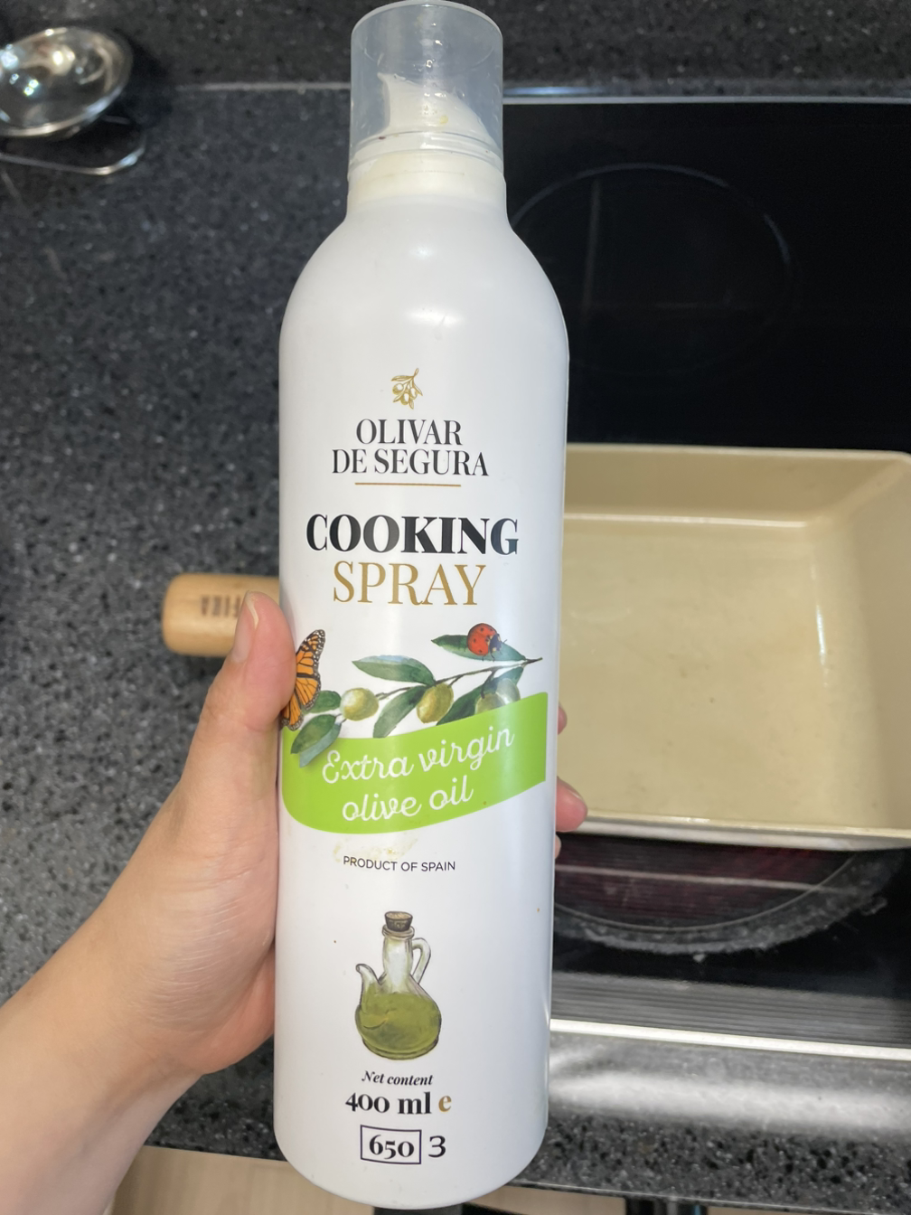 6. 이제 올리브 오일 스프레이를 뿌려준 후 앞뒤로 노릇노릇 구워주면 끝