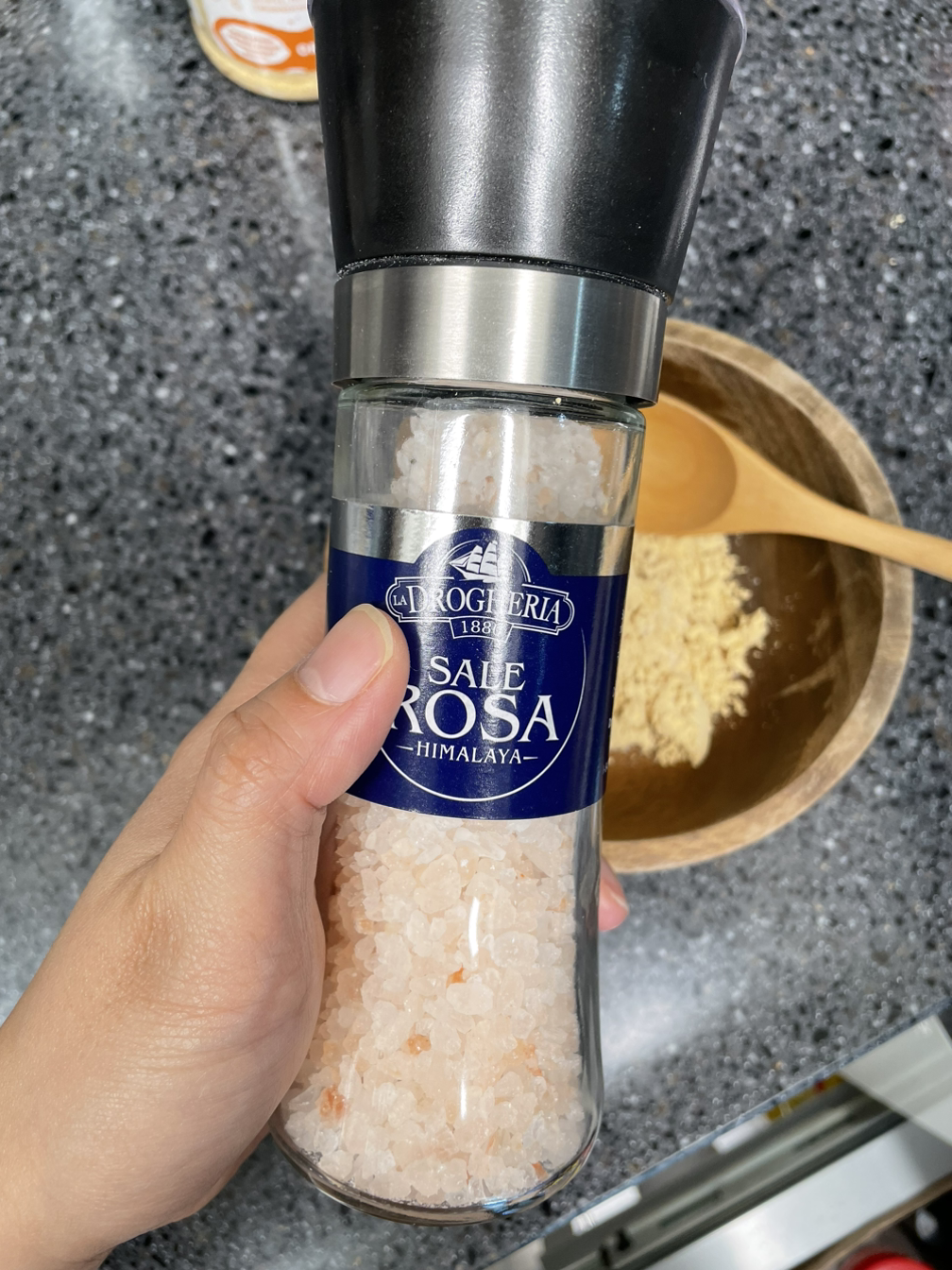 2. 파우더 자체에 살짝 간이 되어있는 듯 하지만 집에 있는 히말라야 핑크솔트를 아주 조금 더 뿌려주었다.