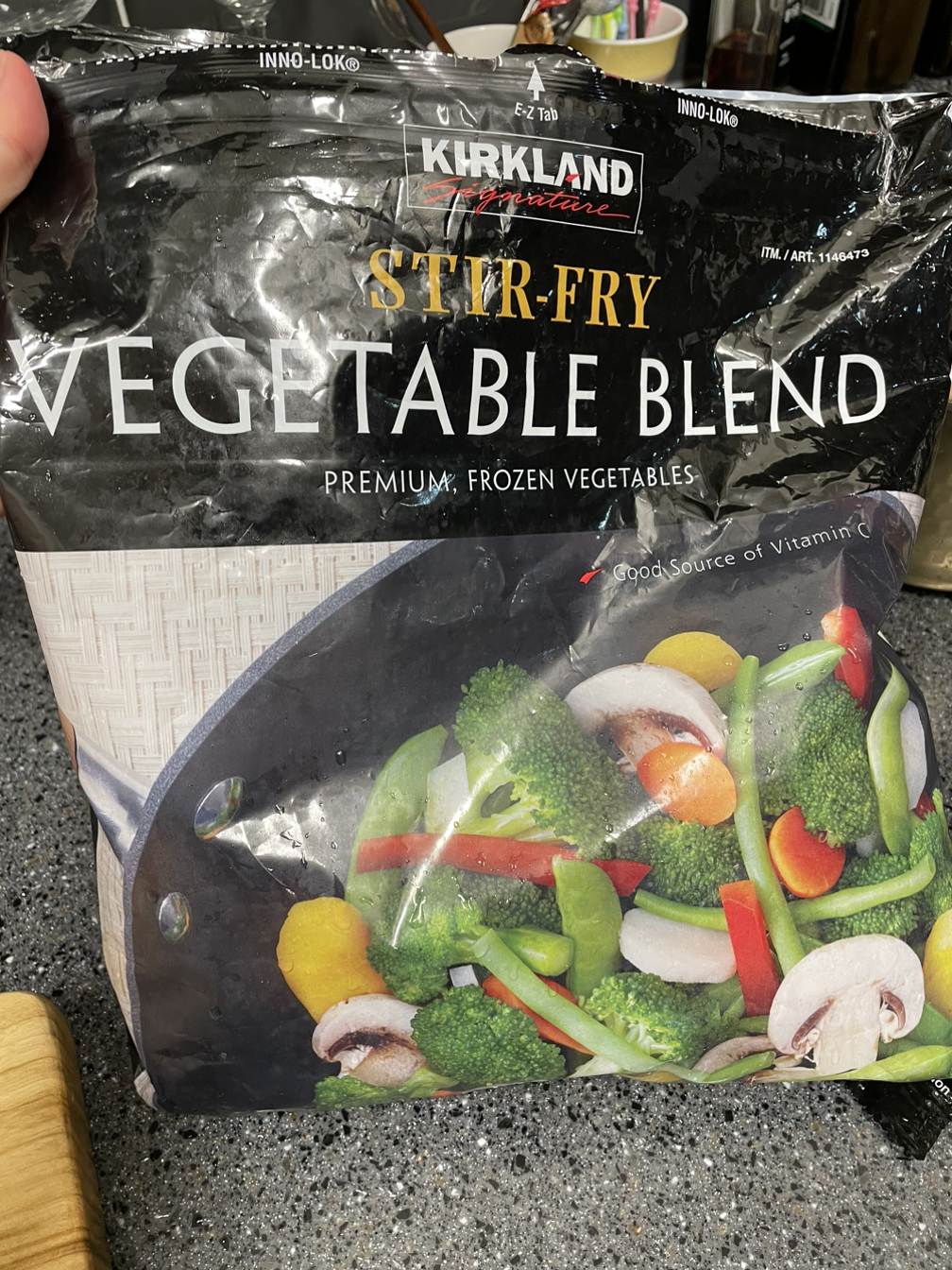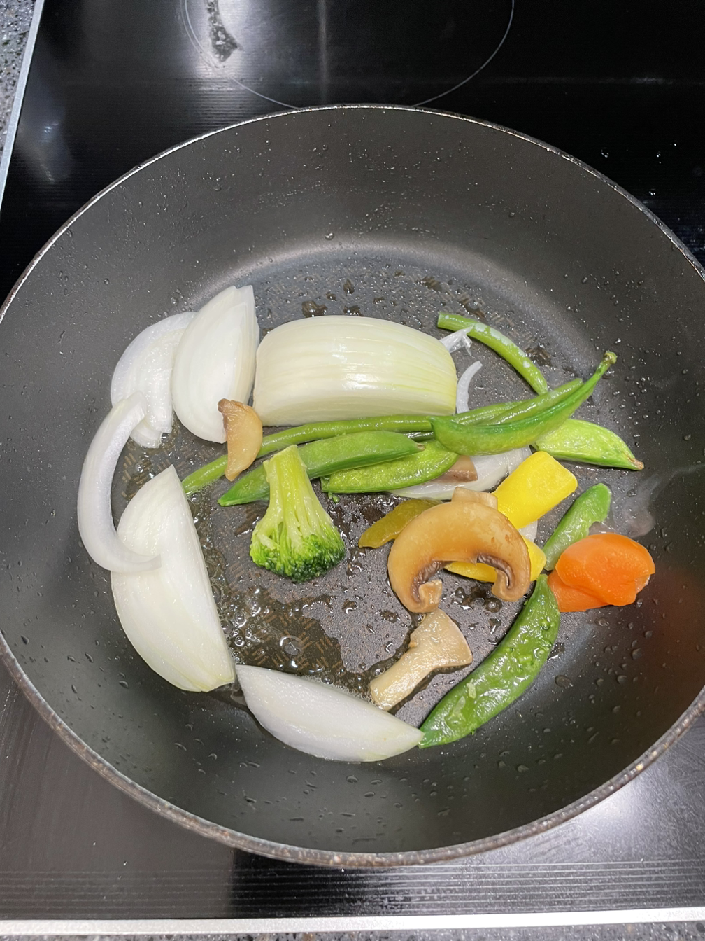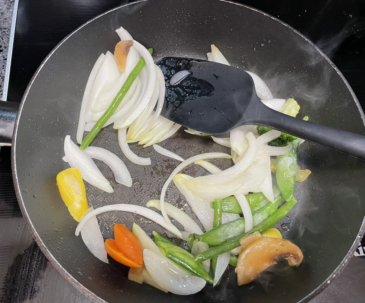 1. 먼저 오늘 들어갈 야채는 냉장고에 돌아다니는 냉털 야채라면 아무거나 다 가능하다. 나는 양파와 역시 코스트코에서 구입한 냉동야채를 활용했다.