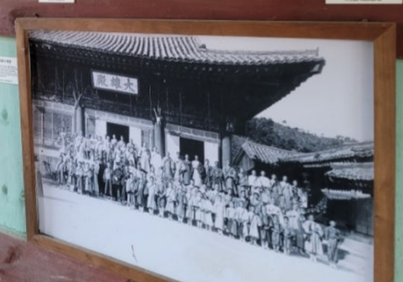 건봉사는 규모가 꽤 큰 절이었다. 하지만 6.25 전쟁으로 왕소나무와 불이문을 제외하고 전부 불에 타 그 이전 모습은 사진으로 확인할 수 있었다. 1900년대 초 스님들의 사진으로 당시 이곳이 얼마나 큰 규모였는지 짐작해 볼 수 있었다. 사찰 이곳저곳을 다니다 보니 터만 남은 곳과 복원 중인 건물도 볼 수 있었다.