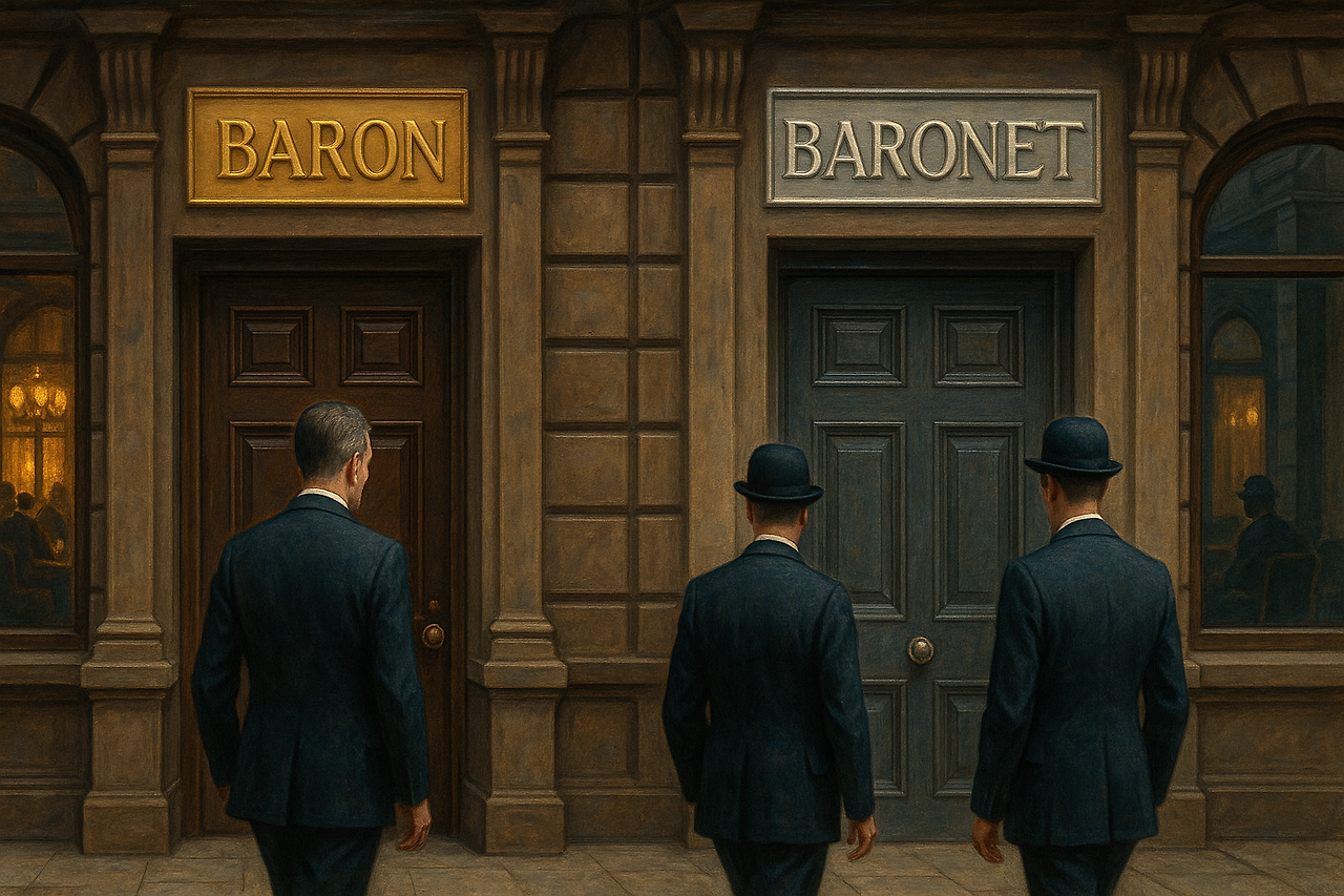 여기서 사람들이 가장 혼동하는 작위가 바로 'Baronet(배러닛)'이다. 얼핏 Baron과 비슷해 보이지만, Baronet은 귀족이 아니다.