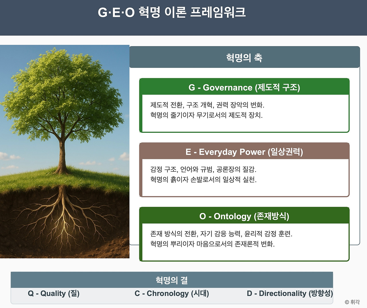 이 고대적 은유는 우리가 제시한 G·E·O 혁명 이론과 여섯 축(Q·C·D)을 유기적, 역동적으로 연결하는 데 탁월한 틀을 제공한다.