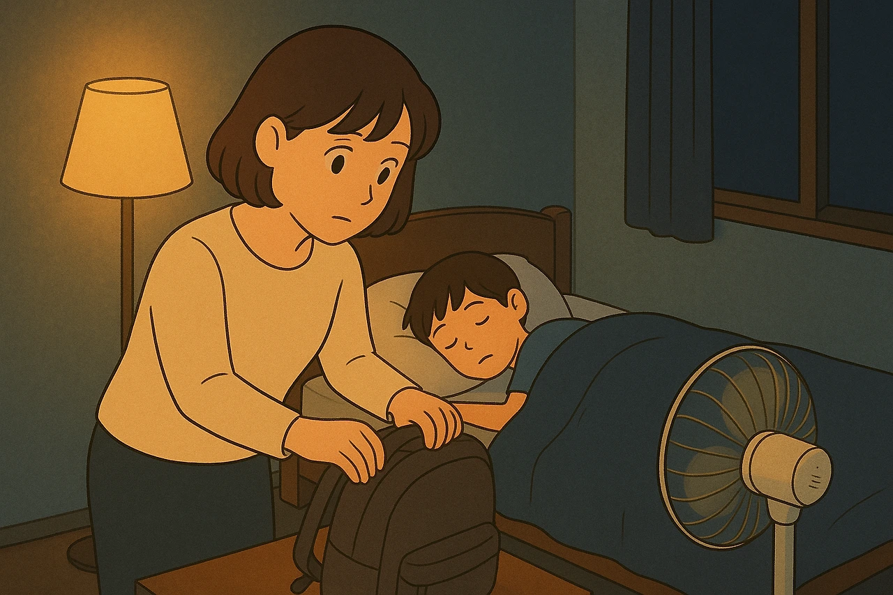 한밤중 아들 자는 방에