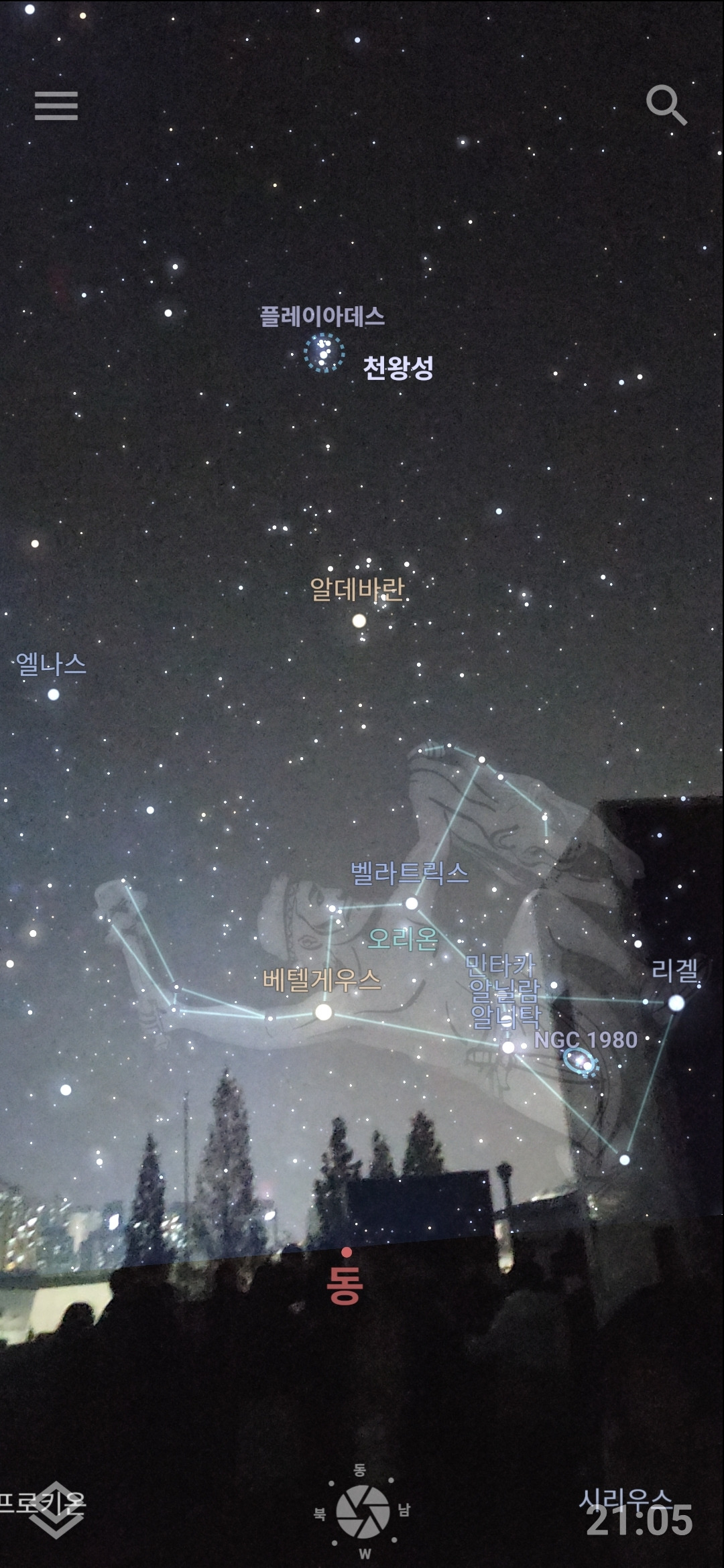 빛이 없어야 잘 보이기에 칠흑같이 어두웠고 안전사고에 유의하라는 말씀을 떠올리며 천천히 움직였다. 먼저 대학생들의 설명을 들으며 핸드폰 스타테리움 앱을 켜고 밤하늘을 보니 와~ 별자리들의 이름이 다 뜨는 게 아닌가 이 좋은 앱을 왜 아직 안 사용하고 있였지?