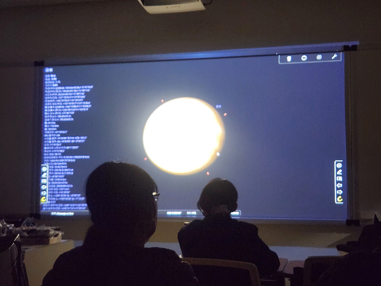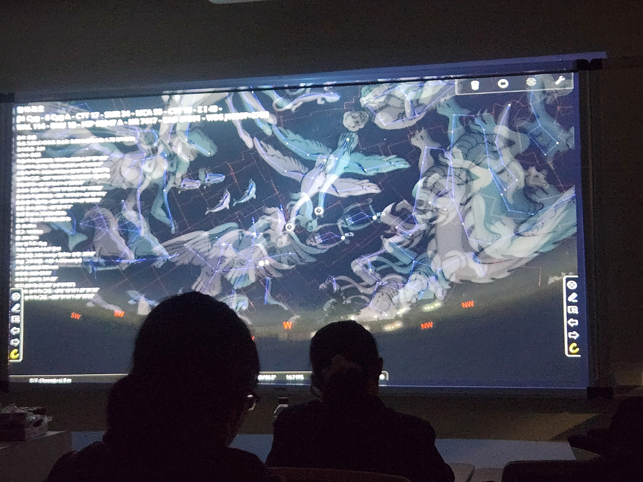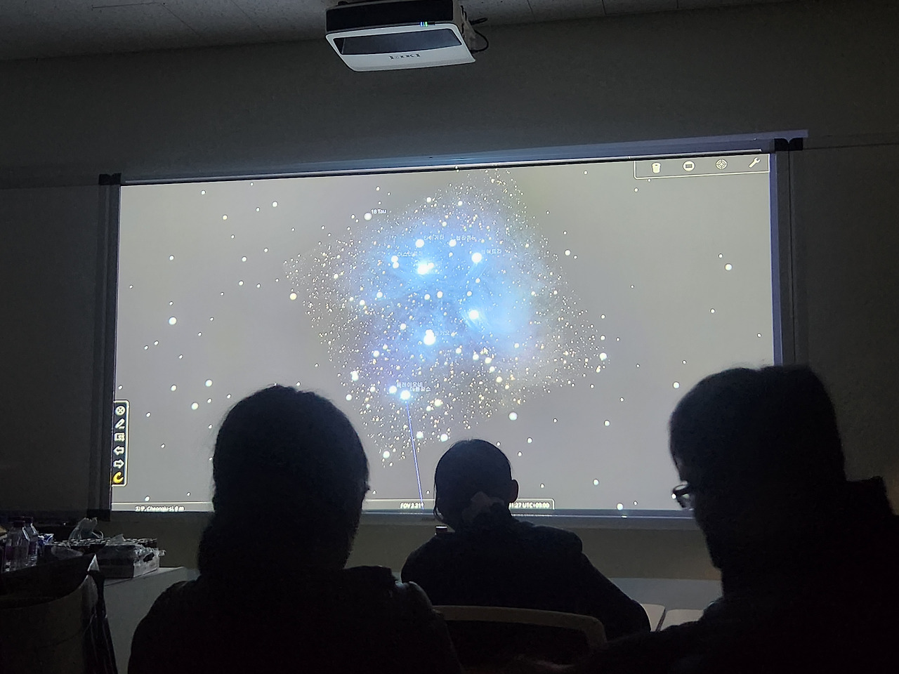 간식이 준비되어 있어 먹으며 아이들을 기다리면 됐는데 대학원생이자 조교인 분이 부모님들이 심심하실 거 같다며 슬라이드를 내려서 스타테리움(stellarium) 사이트를 통해 지금 천체 모습을 보여주었습니다. 예전에 알고 있던 사이트였는데 그동안 별로 열어볼 일이 없었는데 강의실에서 큰 화면으로 보니 정말 와~ 감탄이 나았습니다. 저뿐만 아니라 거기 있는 학부모들 모두가 말입니다.