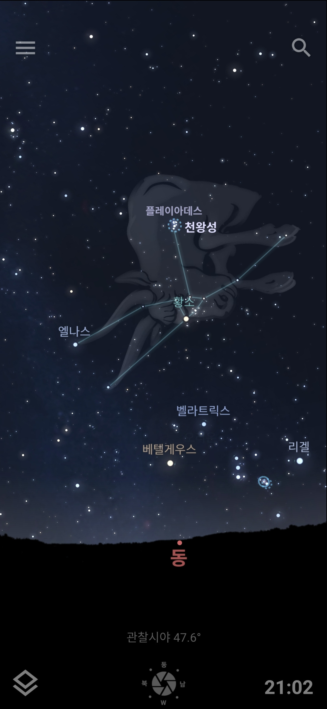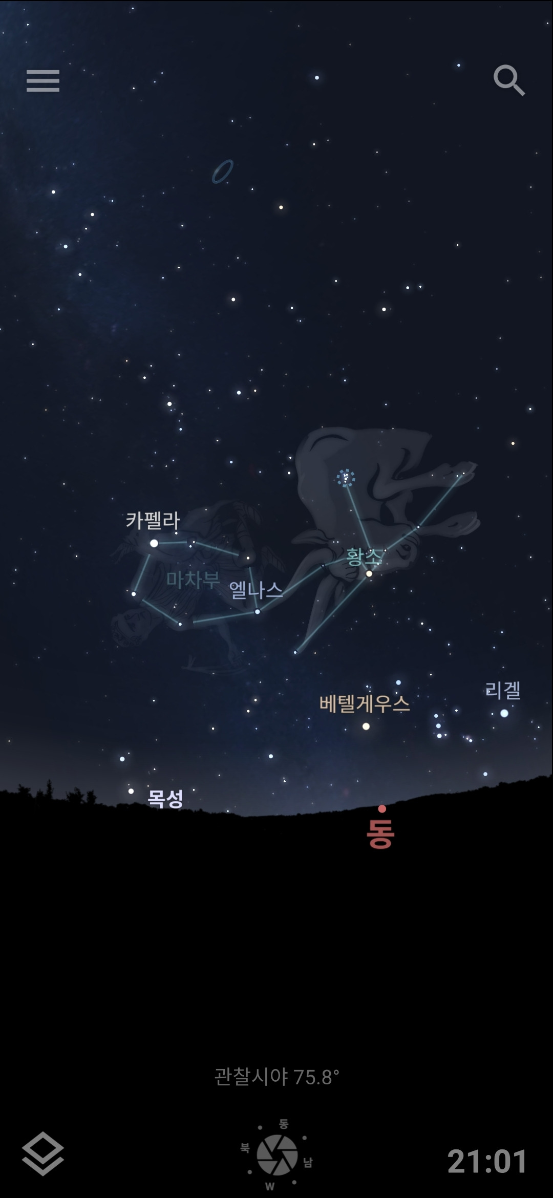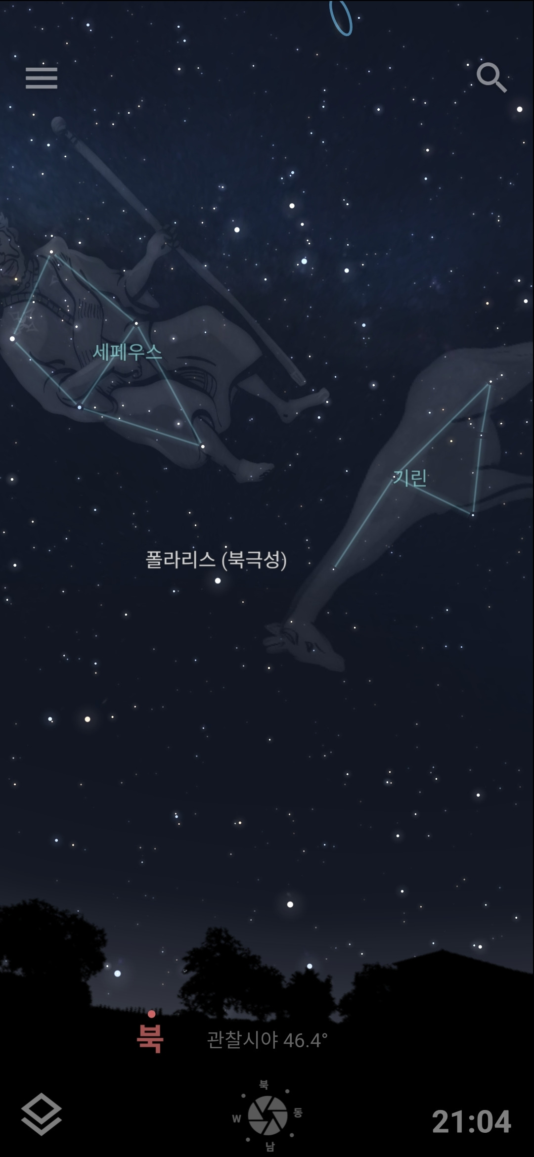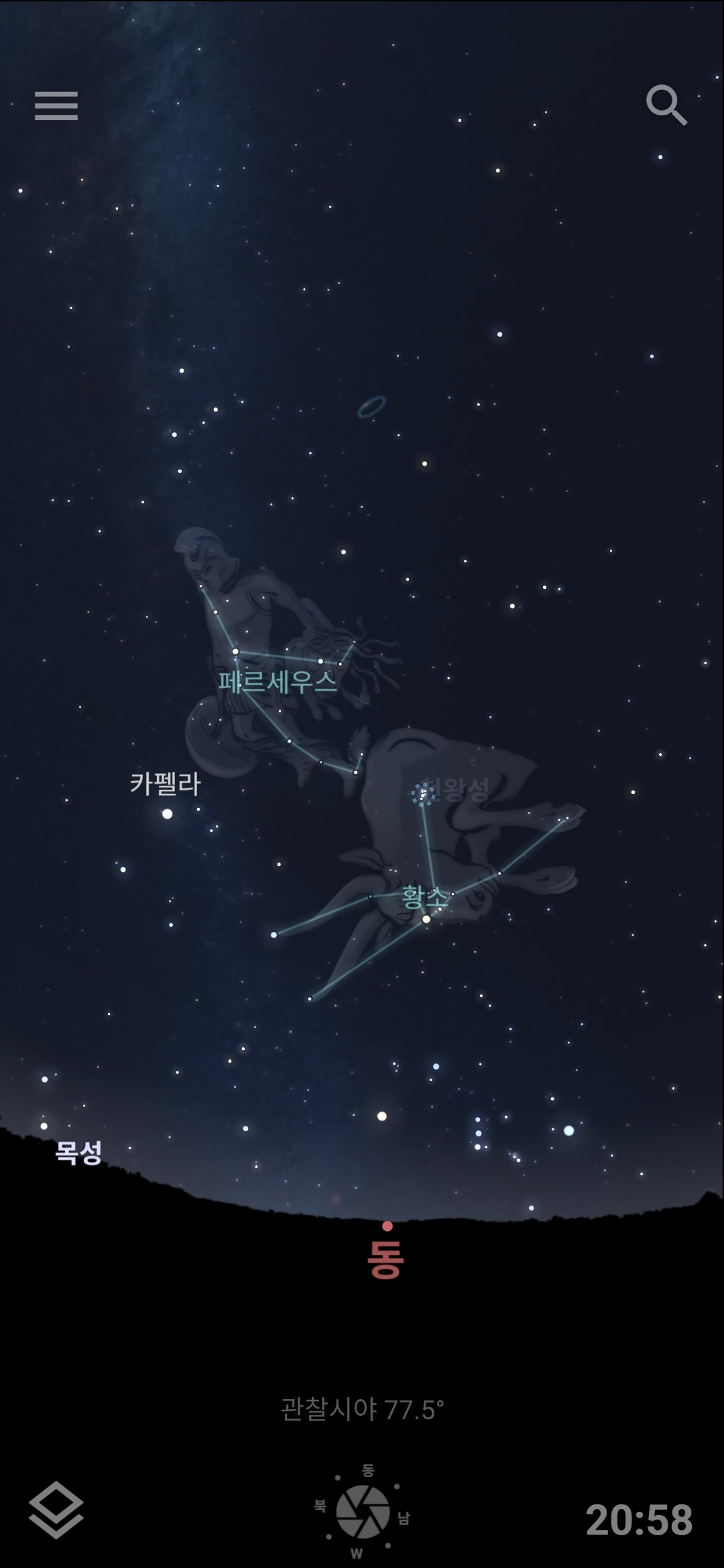 위치를 바꿀 때마다 다른 별자리가 보이는 것도 신기했고 특히 천왕성과 목성이 뜨는 것도 신기했다. 목성은 지금 떠오르고 있었다. 북극성(폴라리스)은 알고 있듯이 역시 밝다.