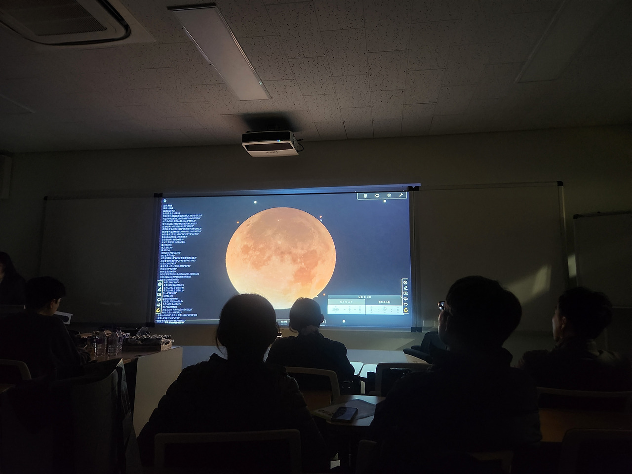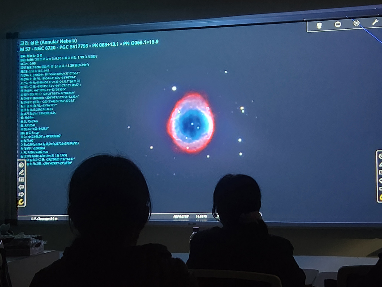 밤이 깊어가는데 어두운 강의실에서 우주를 보며 설명을 들으니 어머니 무릎에 누워 밤하늘을 보며 별이야기를 듣는 거 같이 꿈결 같기도 하고 경이로운 마음도 들었습니다. 조교가 "쉬시는데 이제 그만할까요?" 하자 모든 어른들이 아니요 재미있어요! 를 외쳤습니다.