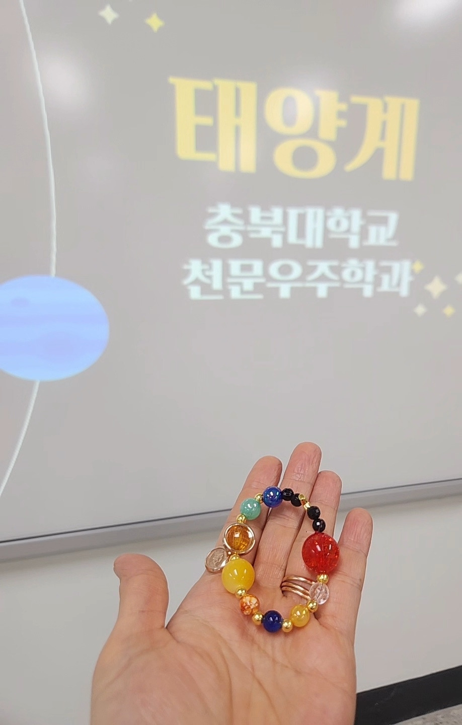 강의가 끝난 후 오늘 갑자기 구름이 몰려와 목성을 관측하려고 했는데 먼저 천문학 굿즈를 만들러 4층으로 이동했습니다. 아이들은 한 강의실에 모여 대학생 선생님의 지도로 행성 팔찌를 만들게 되었고 부모님들은 옆 대기실로 들어갔습니다.