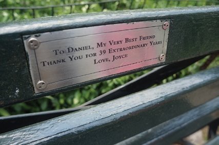 뉴욕 센트럴파크 등지의 공원 벤치에는 고인을 기리는 짧고 진심 어린 추모 문구들이 새겨져 있다고 합니다.