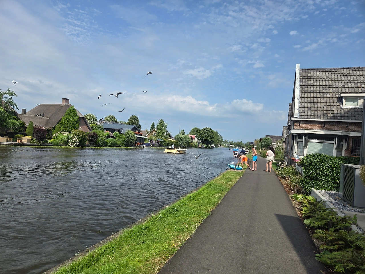 자전거를 타고 가다 보면 꼭 강가를 끼고 가게 될 때가 많은데, 낮은 땅인 네덜란드의 물과의 사투와 정복의 결과이겠지만, 땅 위에 자전거 길을 호수를 끼고 간다는 느낌보다는 물 위에 자전거 길이 나 있다는 느낌이 들 때도 많다. 처음에는 아슬아슬 저 강에 빠지면 어쩌나 염려하며 다니던 길이 이제는 이 정도 폭이면 그런 걱정은 안 해도 된다는 것쯤은 알게 되었다.