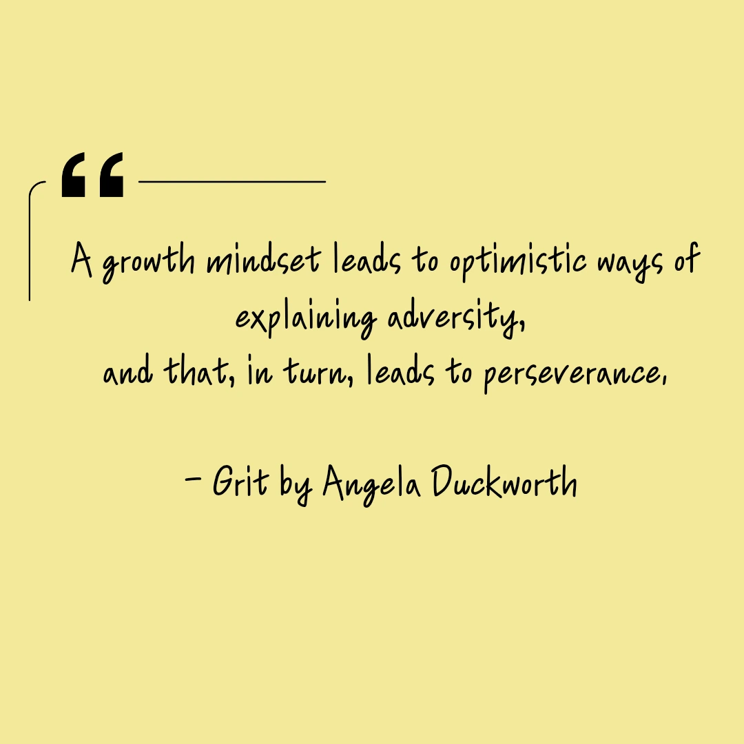 “A growth mindset leads to optimistic ways of explaining adversity, and that, in turn, leads to perseverance.”