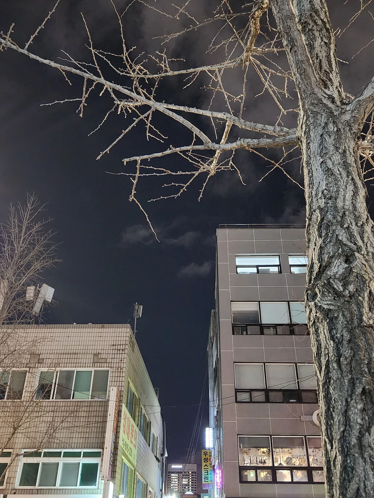 녹슨 간판이 위태롭게 달린 비어 가는 소형 건물 외벽은 더 이상 관리할 필요가 없는, 마르고 노화된 피부 같아 누구도 쳐다보지 않았다. 자꾸 가로등 불빛에 의지해 등 돌려 흐느끼는 건물들을 다독이며 시선이 멈춘 순간을 담아 본다.