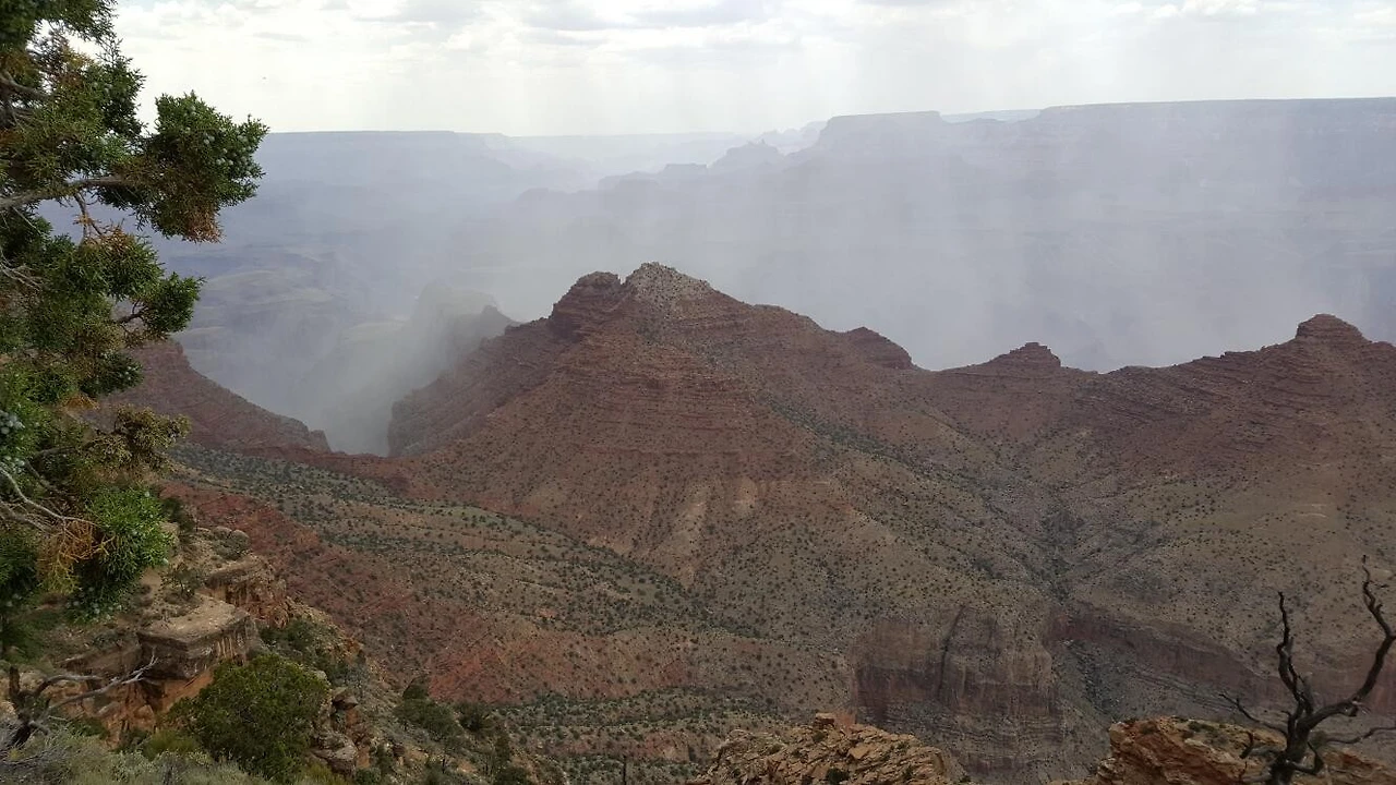 그랜드 캐년 주변은 즉 Colorado Plateu는 면적이 13만 평방 마일에 달하는 광대한 평야지대 이다. 그런데 놀랍게도 해발이 2000미터를 간단히 넘는다고 한다. 개마고원을 가 본 적이 없으나 그곳도 이곳 비슷하지 않을까? 높은 해발, 낮은 기압으로 인해 간식으로 가져간 새우깡 봉지가 빵빵하게 부풀어 올라 마치 비행기 타고 하늘로 오를 때 볼 수 있는 현상과 같다.