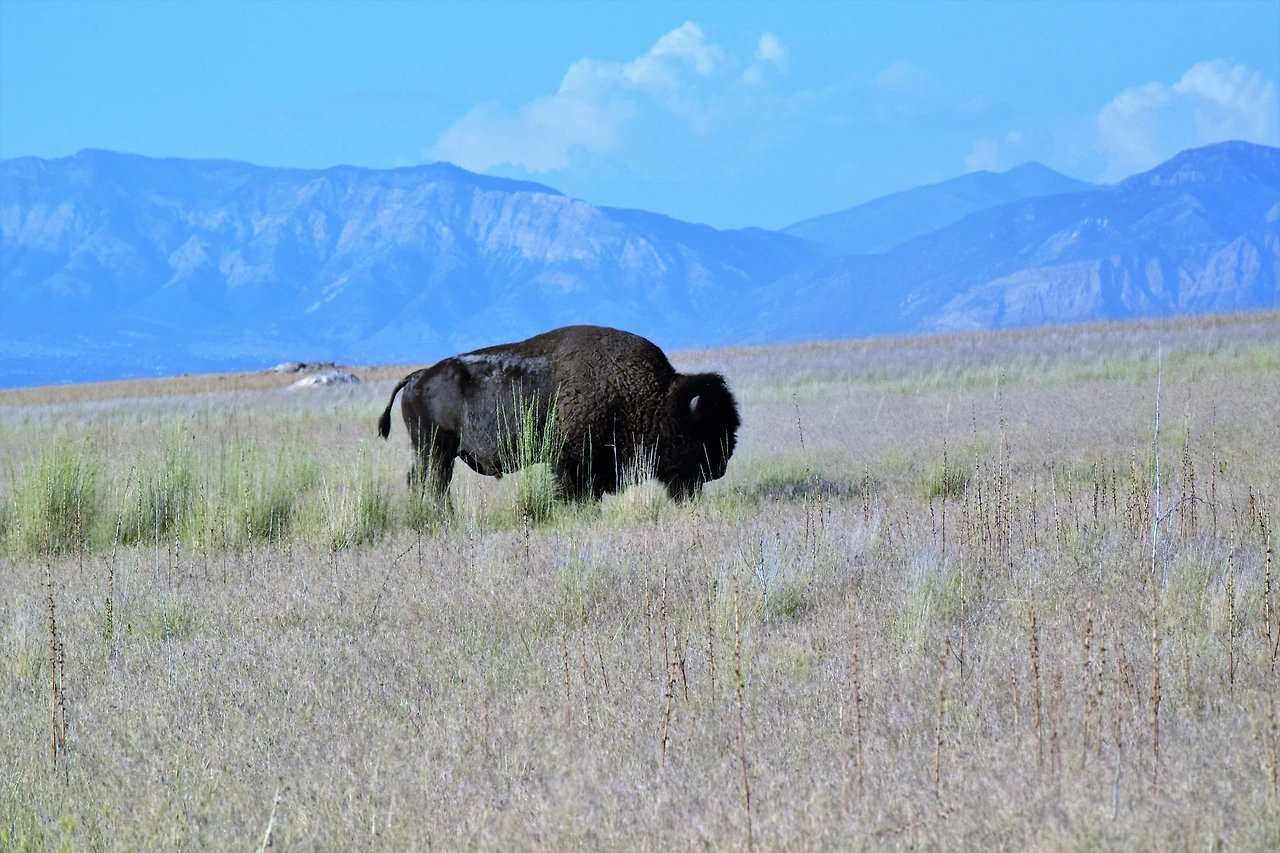 몰몬 교도들이 호수에 둘러 싸인 섬에다 가져다 놓았다는 바이슨