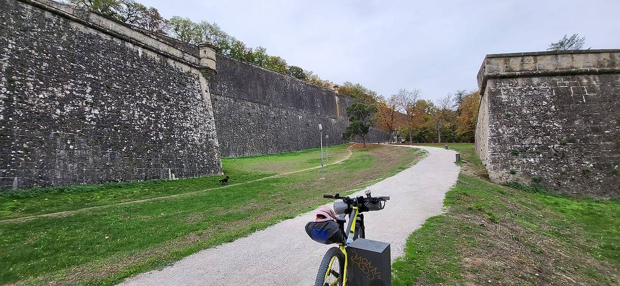 <로마 장군 팜플로나가 세웠다는 팜플로나 성벽 사이로 순례길이 이어진다>