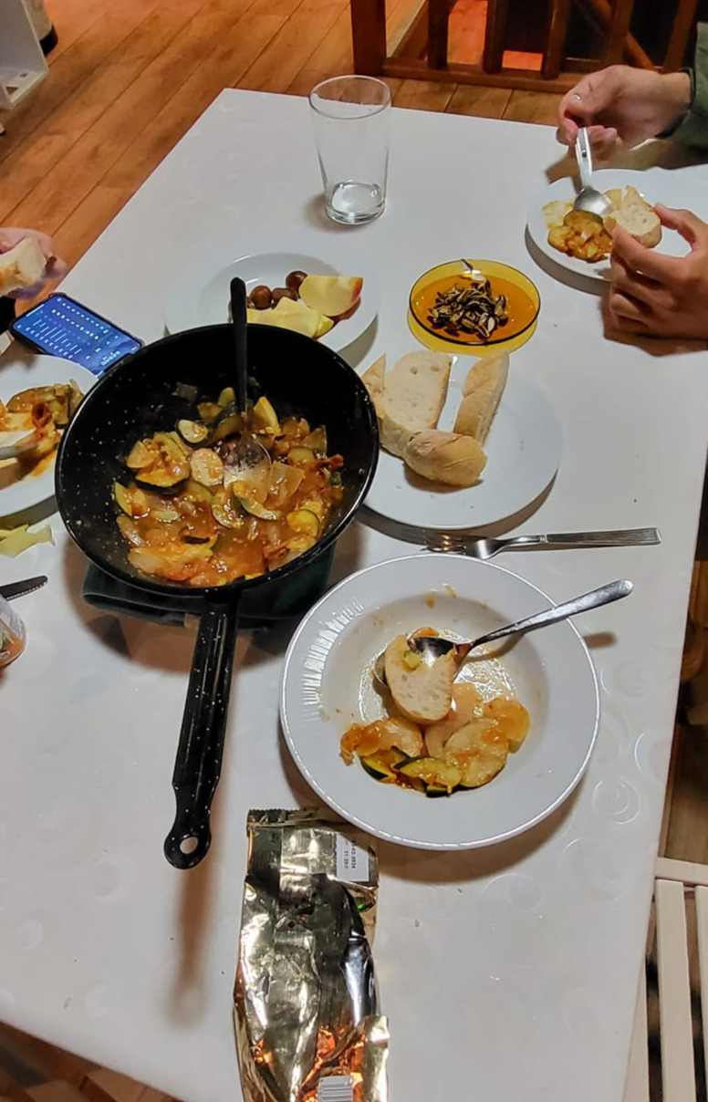 <스페인 식사는 세 가지 메뉴가 나온다. 요리 하나, 마실 것 하나, 그리고 바게트. 바게트는 기본이라 별도로 지불하지 않는데 유독 이 식당에서는 2유로를 받았다.>