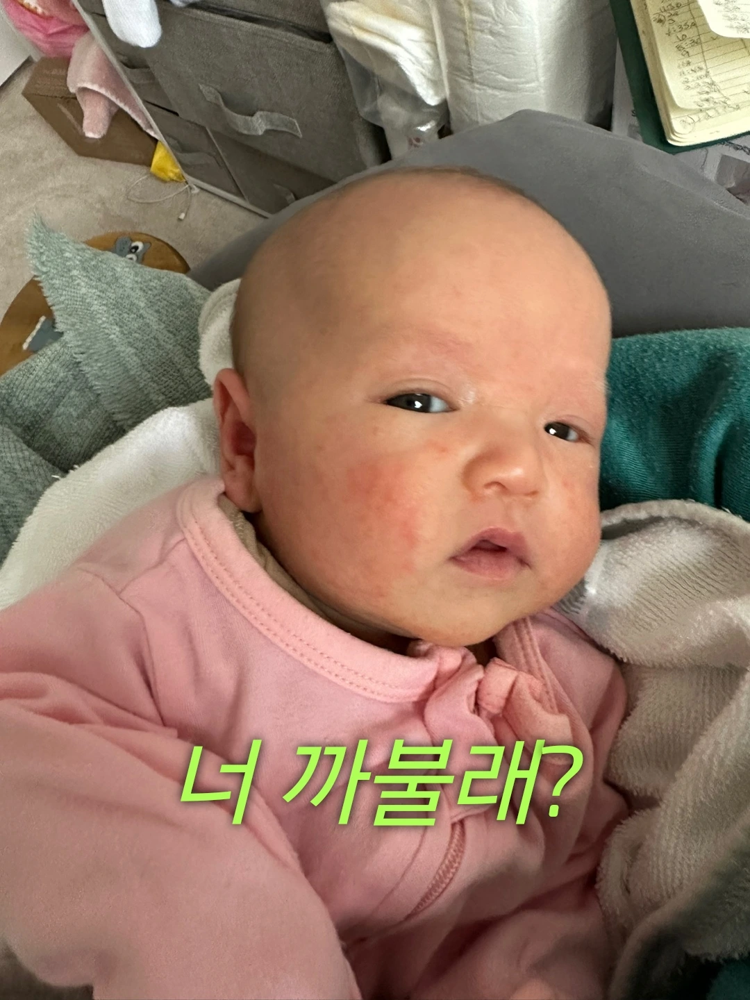 처음으로 민아를 본 ㅂㅂ는 참으로 신기했습니다. 자기보다 더 작은 사람이 있다니.... 그런데 엄청 시끄러운 소리를 내네요.... 헐! 말문이 막혀서...