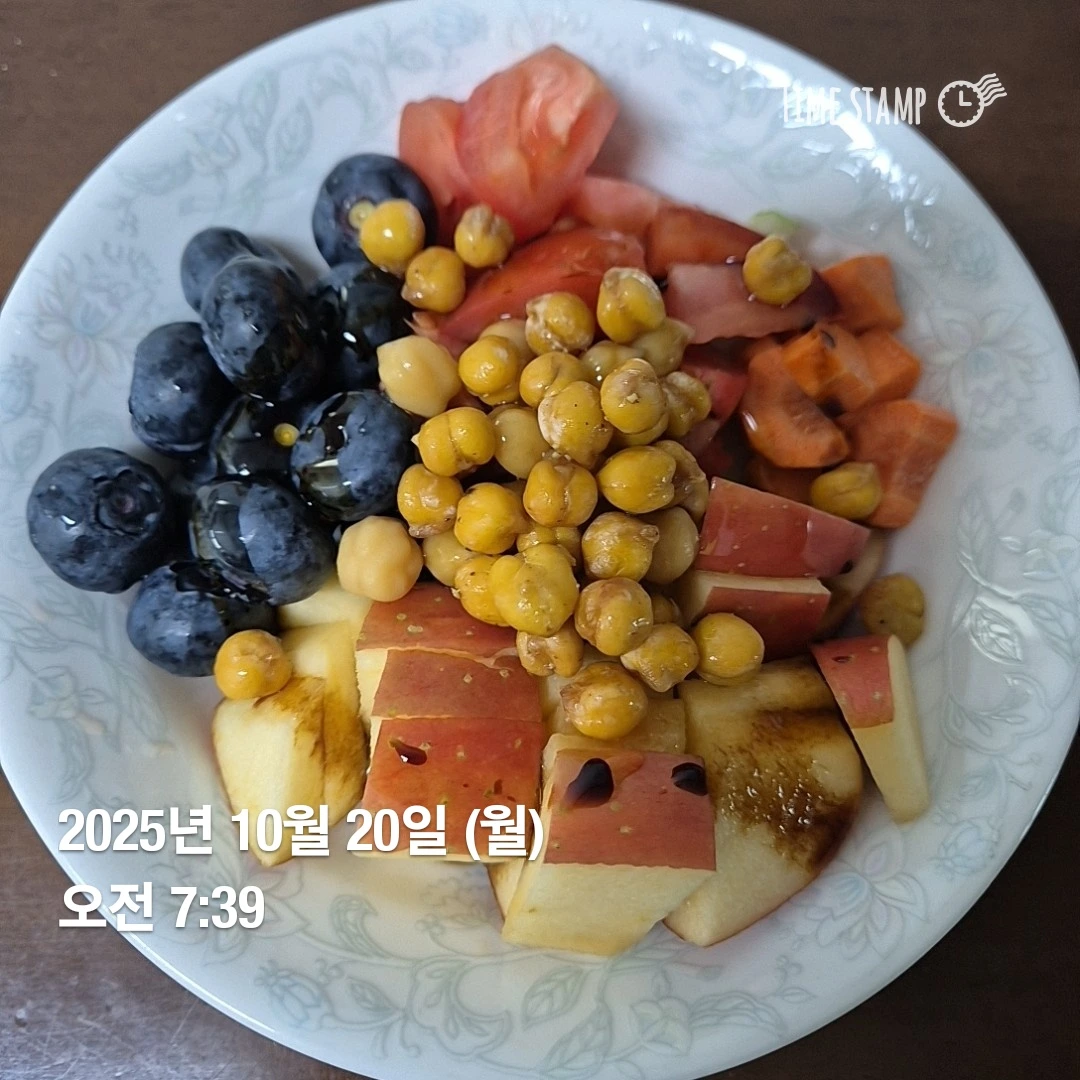 달걀대신 병아리콩 듬뿍 넣어 을리브유 발사믹 뿌려 먹었다