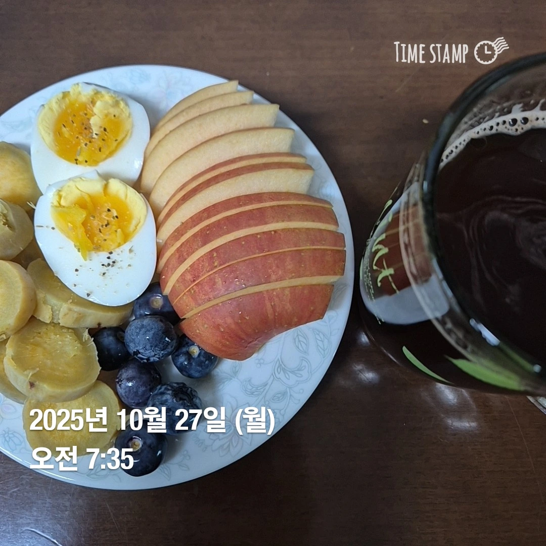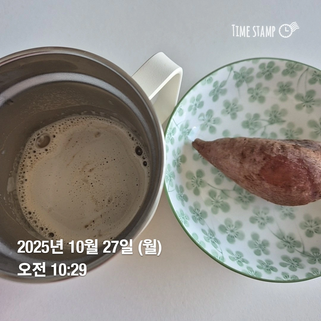 간식으로 작은 고구마 한 개와 라테