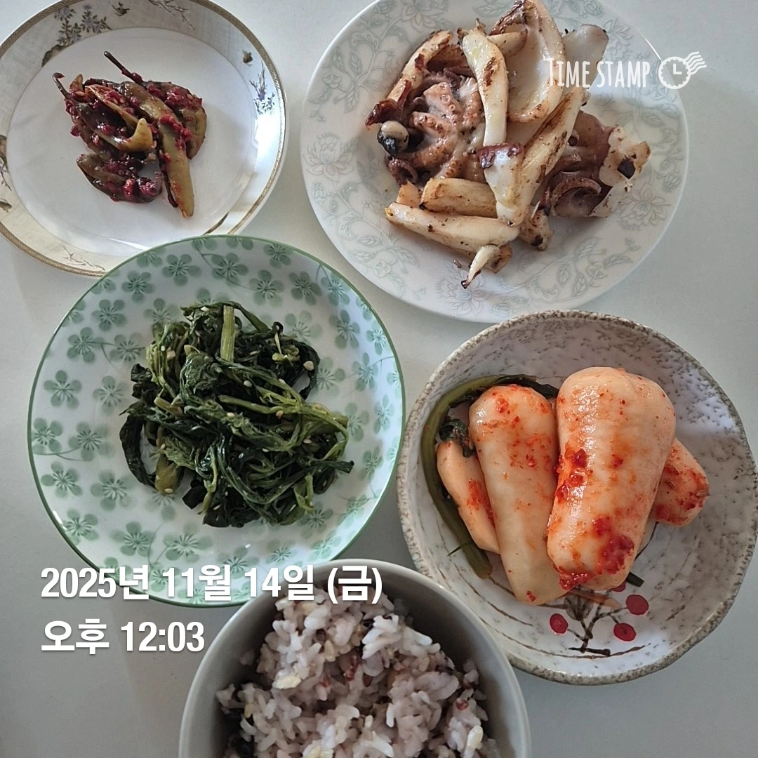 갑오징어 버터구이해서 총각무김치 곁들여 점심