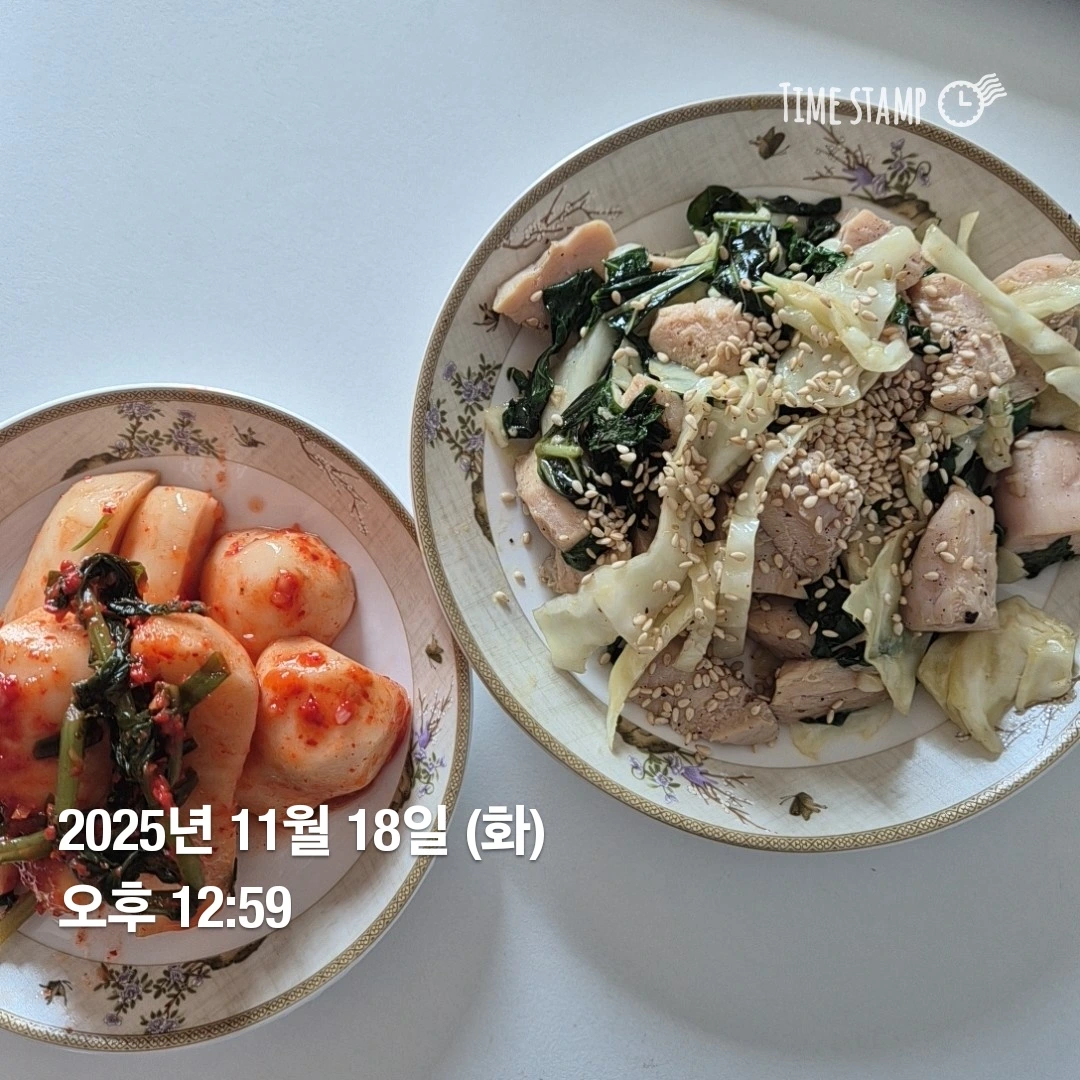 닭가슴살, 양배추. 깻잎 아보카도유에 볶아 점심 해결