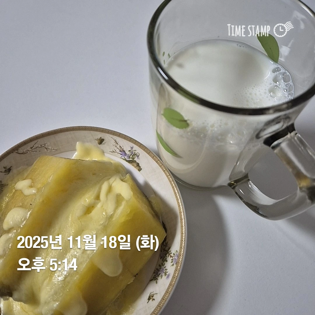 고구마에 치즈 얹어 녹이고 우유와 함께 간식 겸 저녁 먹었다.