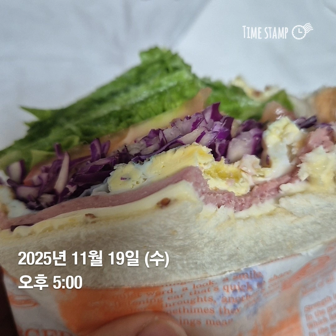 일하고 있는데 이웃 언니가 샌드위치를 준다