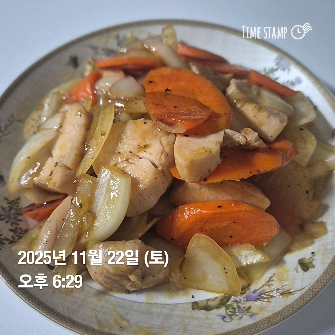 러닝 뛰기 전 닭가슴살, 당근, 양파 아보카도유에 볶아 간단히 먹었다.