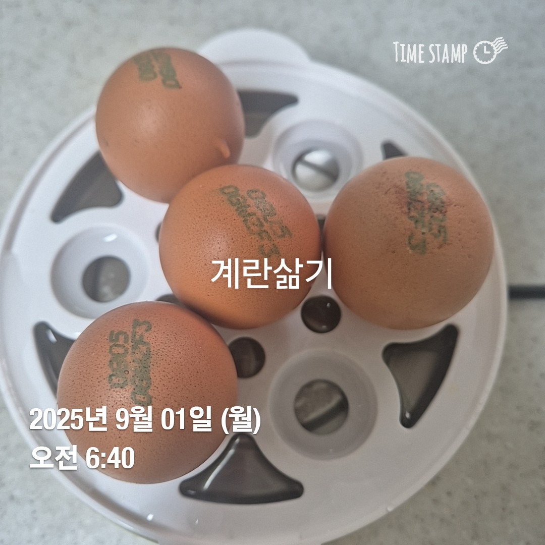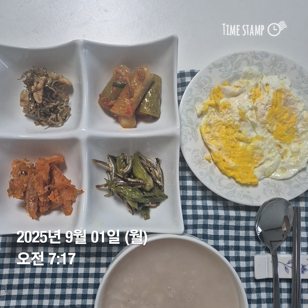 아침으로 삶은 계란과 생채소를 먹지 않는 남편을 위해서는 누룽지를 끓여 차려 주었다.