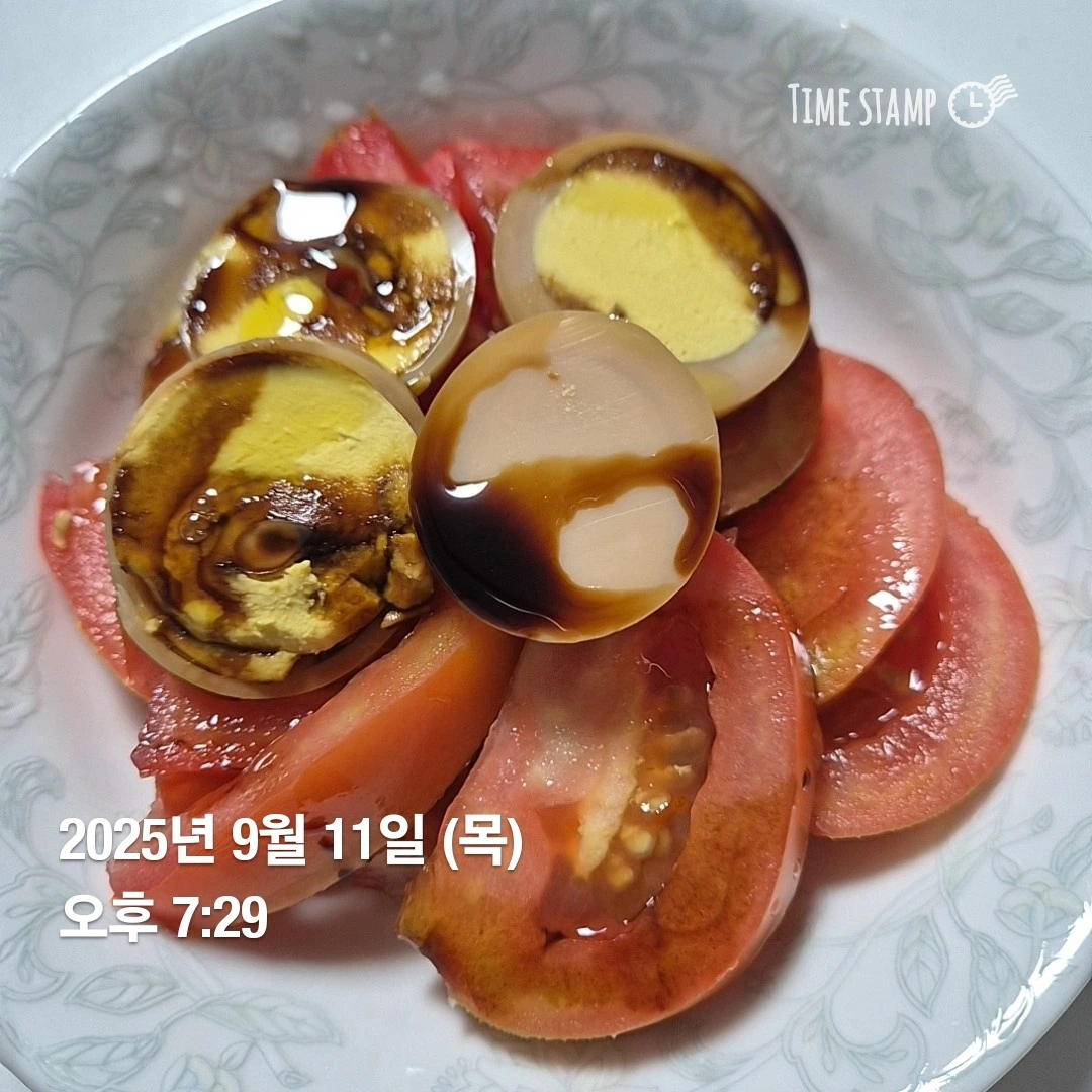햄버거를 먹었기 때문에 닭가슴살 빼고 토마토와 구운 달걀로 저녁 대신했다.